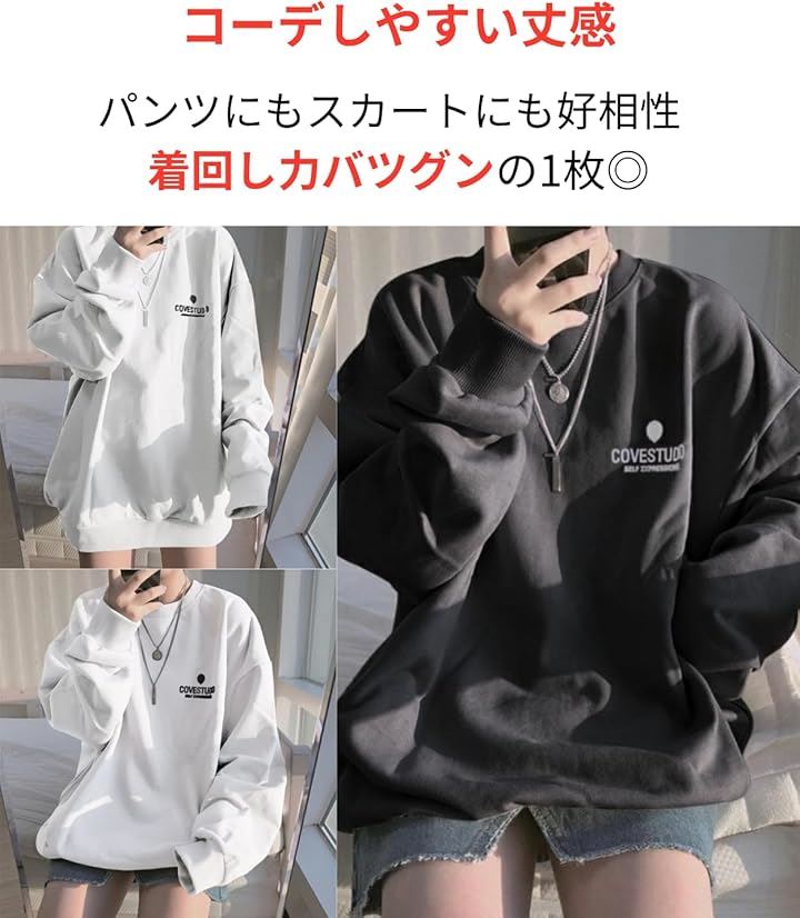 おしゃれに気を遣いたいけれど、リラックスしたい日にもおすすめのロングトレーナーで、快適なおしゃれを楽しみましょう。