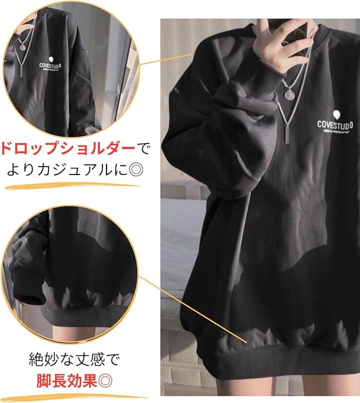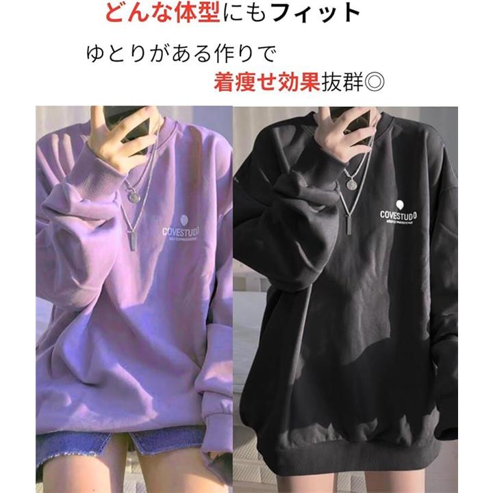 「ゆったり着られる。シンプル可愛いロングトレーナー」「トレーナー レディース 薄手 スウェット」は、ゆったりとしたシルエットが魅力のロングTシャツタイプのスウェット。