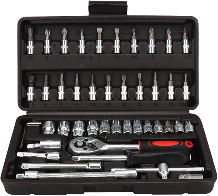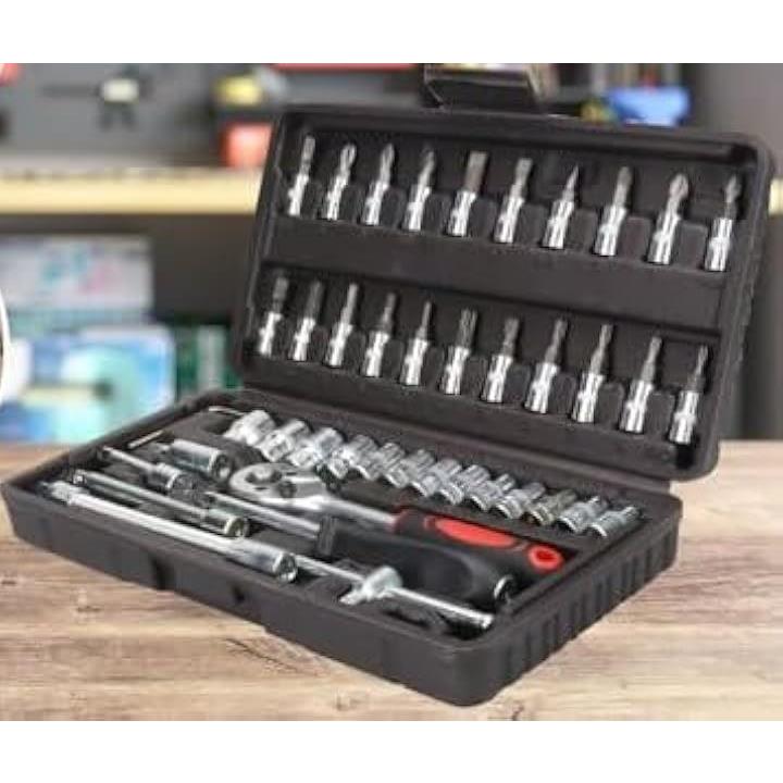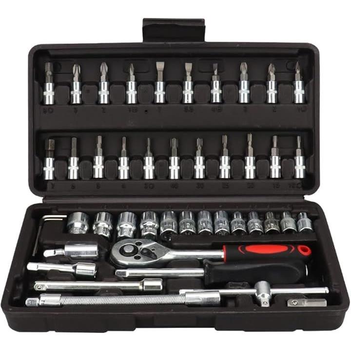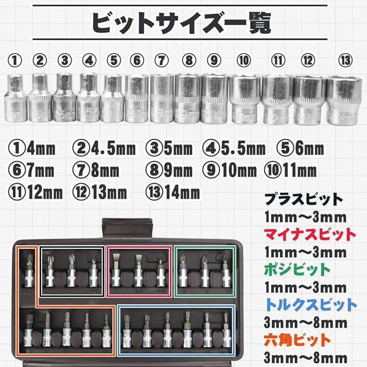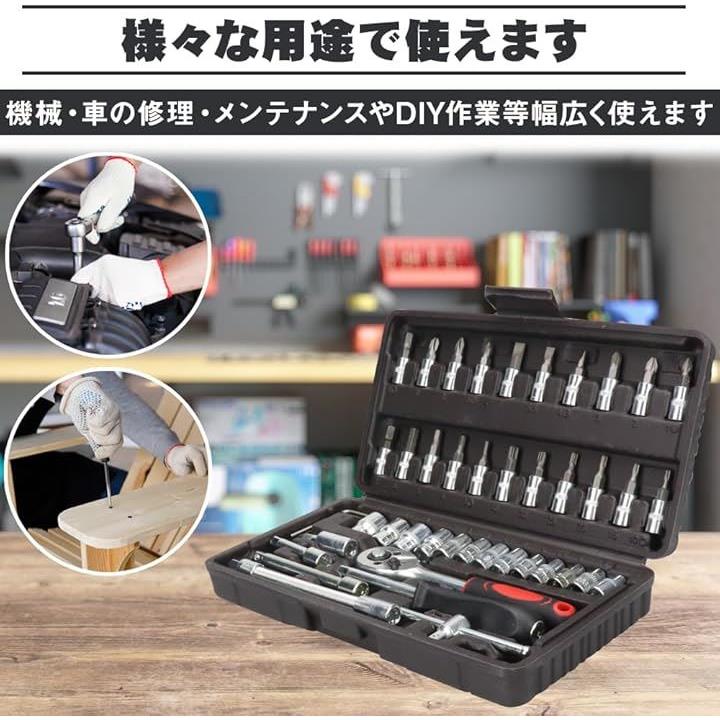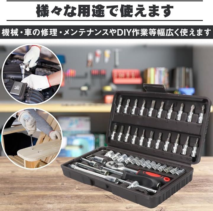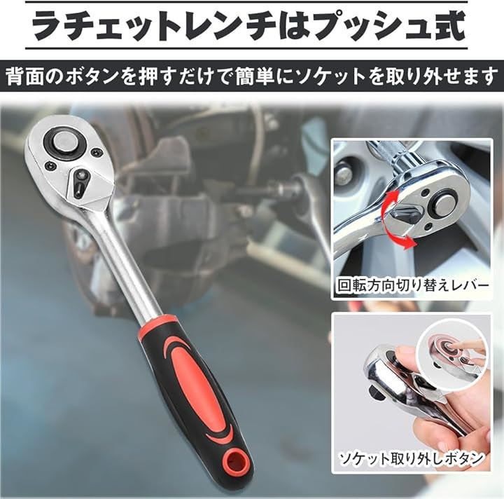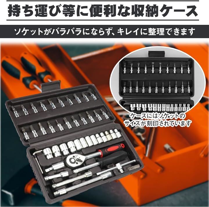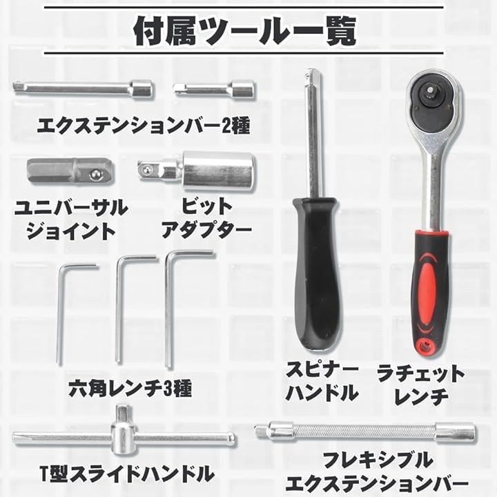 互換品ソケットレンチセット 大容量 ラチェットポジ 六角 汎用性 耐腐食 収納ケース付き 自動車整備