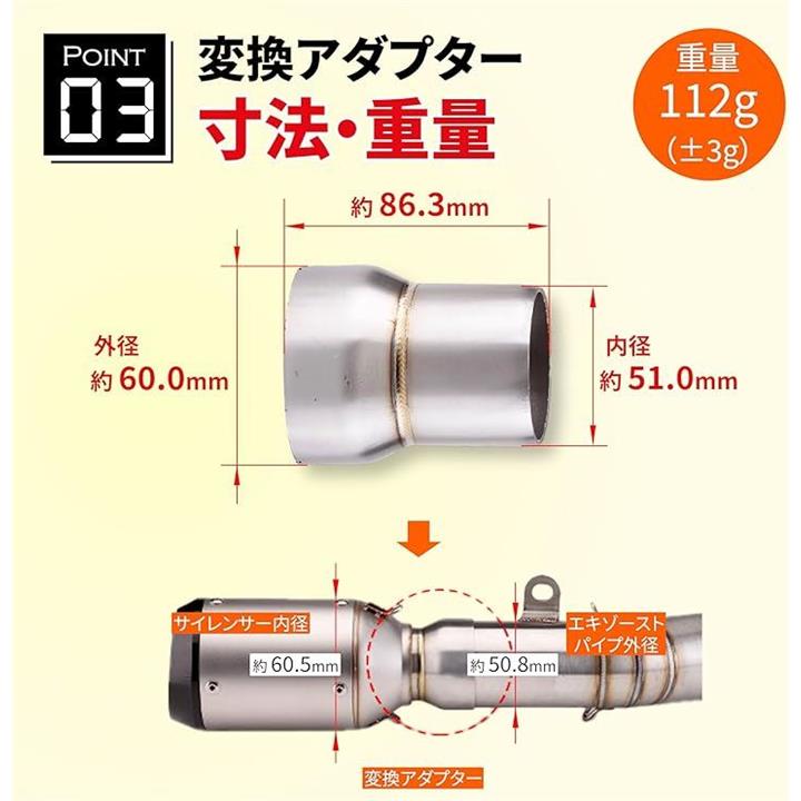 互換品 変換 アダプター バイク マフラー用 ジョイント 中間 パイプ スペーサー 汎用 外径φ60.5 mm>サイレンサー内径50.8mm