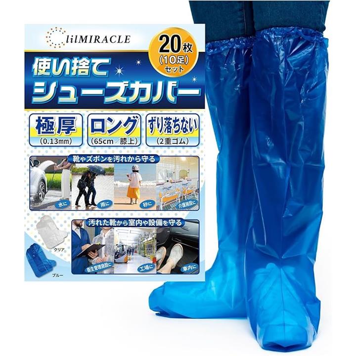 まとめ買い シューズカバー 靴カバー 使い捨て 防水 国内検査済み 膝上まで守る レインシューズカバー ビニール 透明 クリア 200枚 100足組