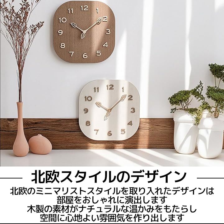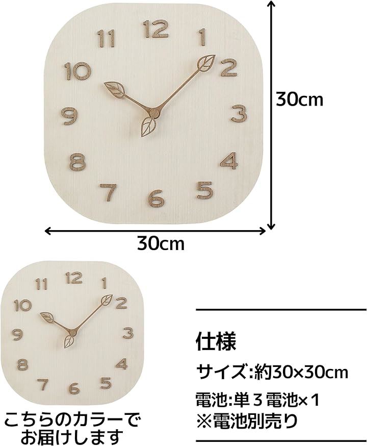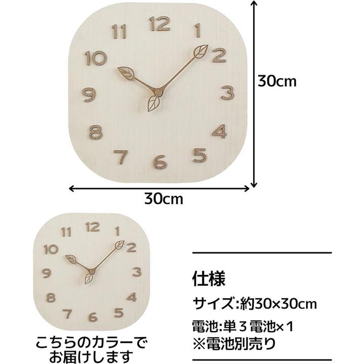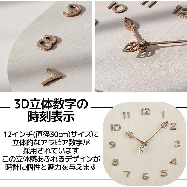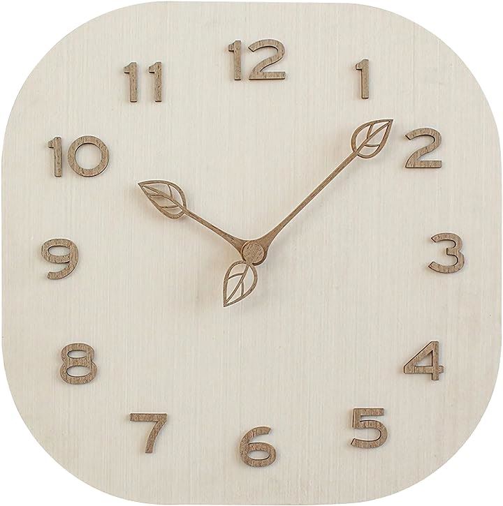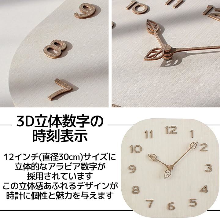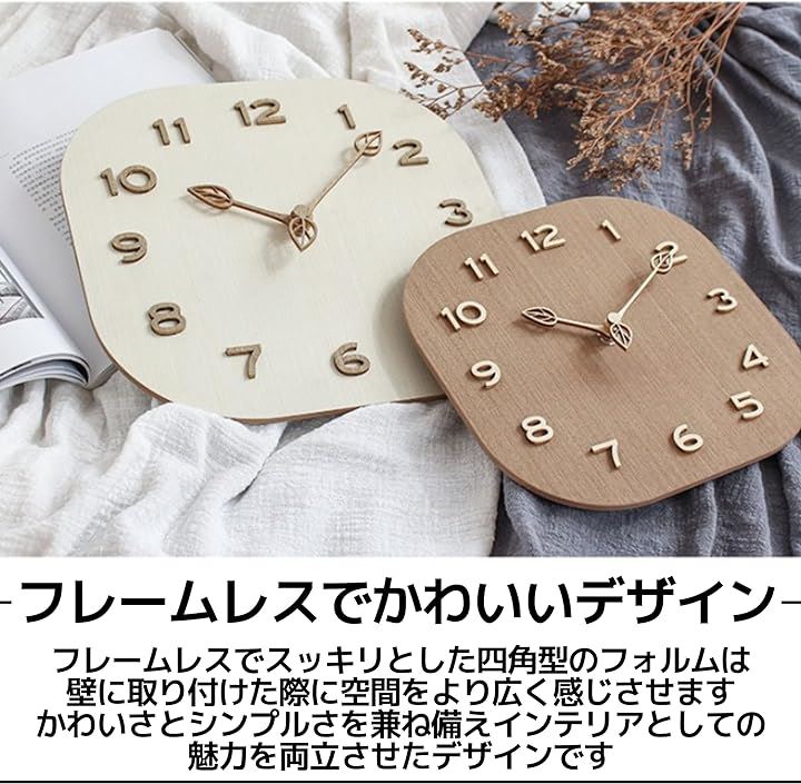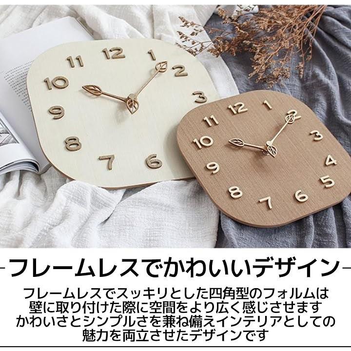掛け時計 壁掛け おしゃれ 北欧 可愛い 葉っぱ フレームレス 木製 3D立体数字 四角 30cm