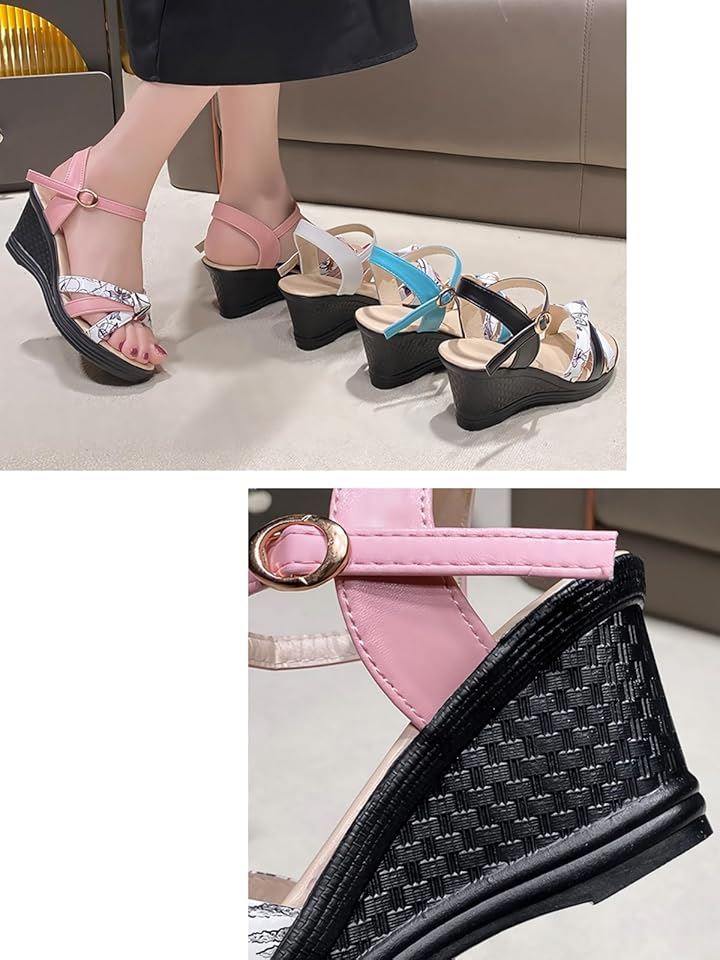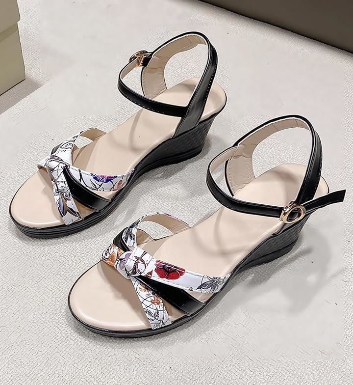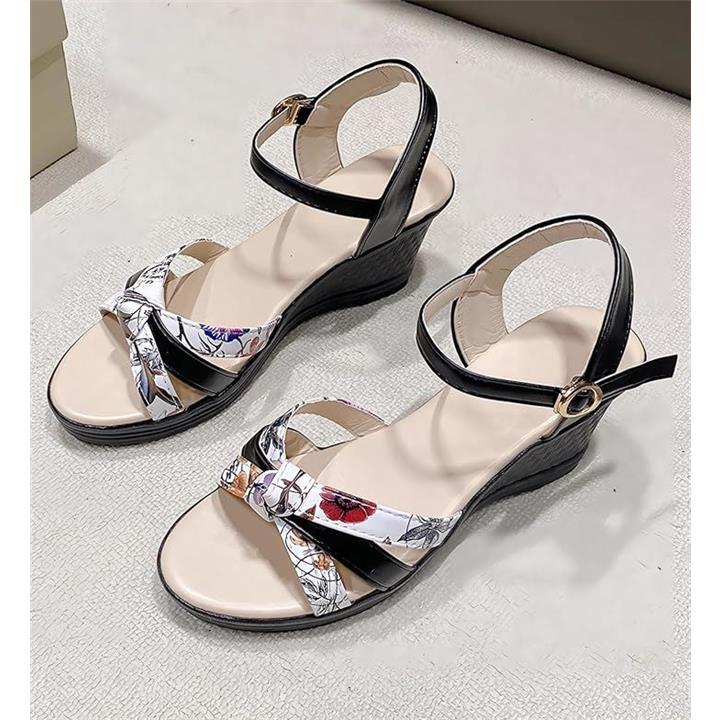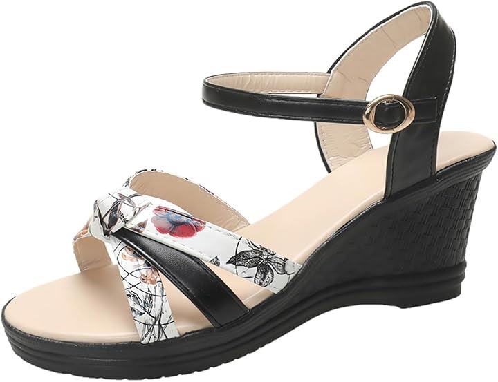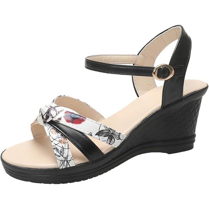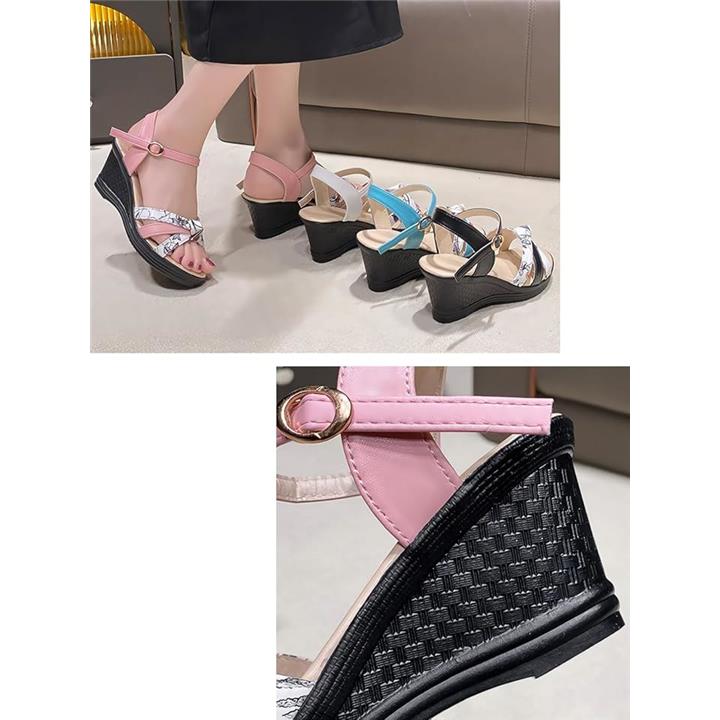 サンダル 厚底 ヒール 7cm 歩きやすい ウェッジ ウエッジ ソール オープン トゥ 美脚 花柄 アンクル バック ストラップ レディース 女性 用 ミュール