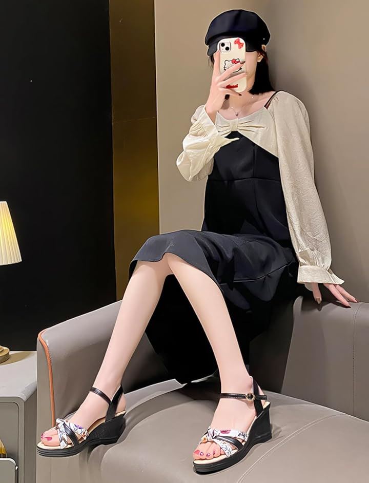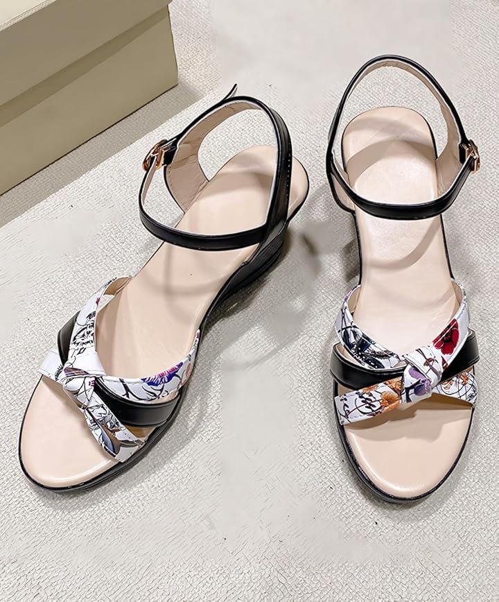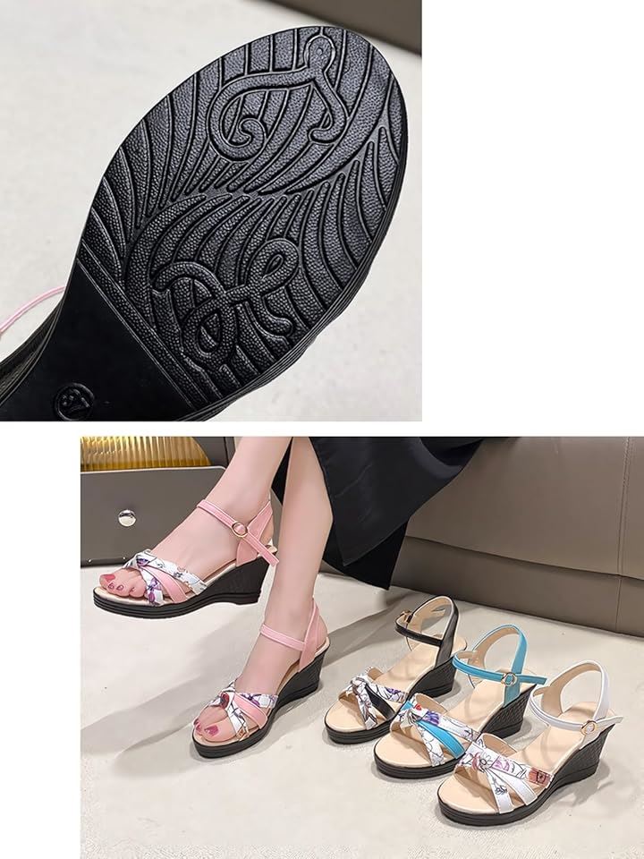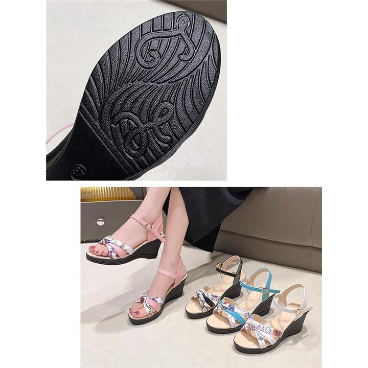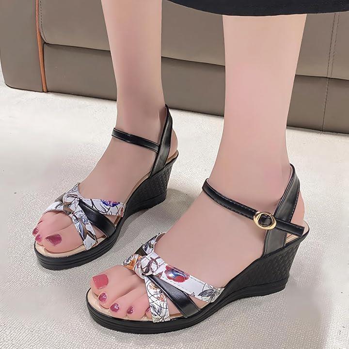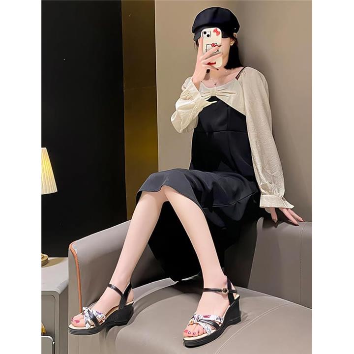 サンダル 厚底 ヒール 7cm 歩きやすい ウェッジ ウエッジ ソール オープン トゥ 美脚 花柄 アンクル バック ストラップ レディース 女性 用 ミュール