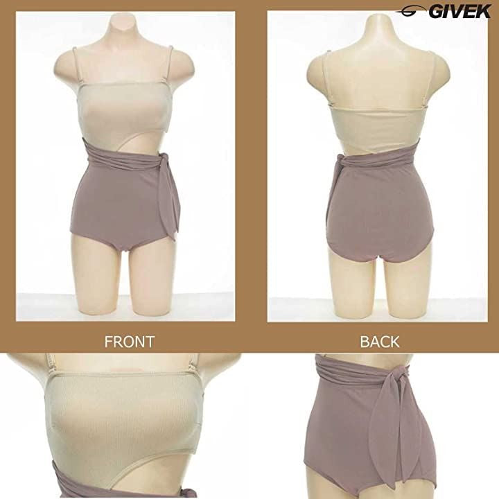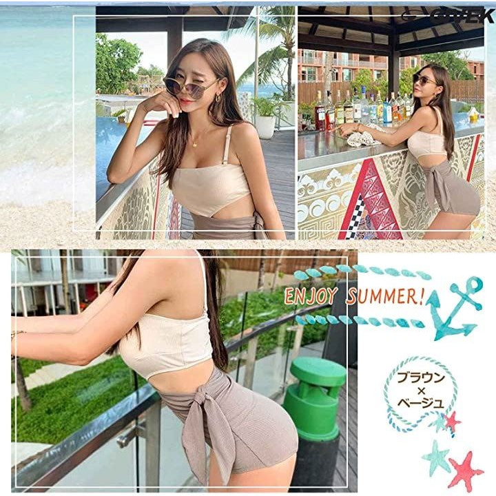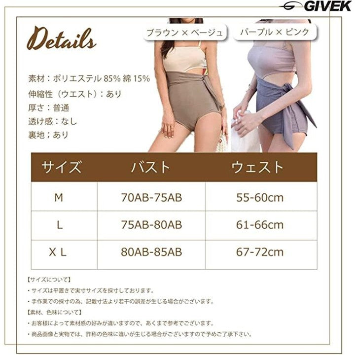 「GIVEK」水着 レディース ワンピース セクシー 可愛い ハイウエスト 上下セット インナー付き(L, ブラウンxベージュ) |