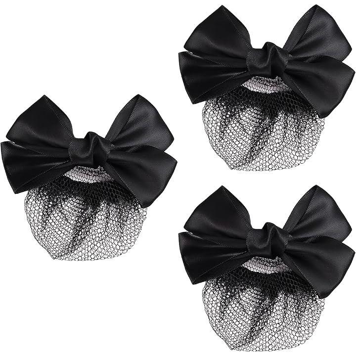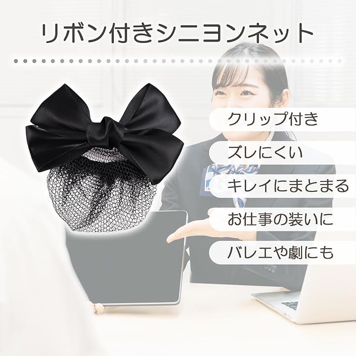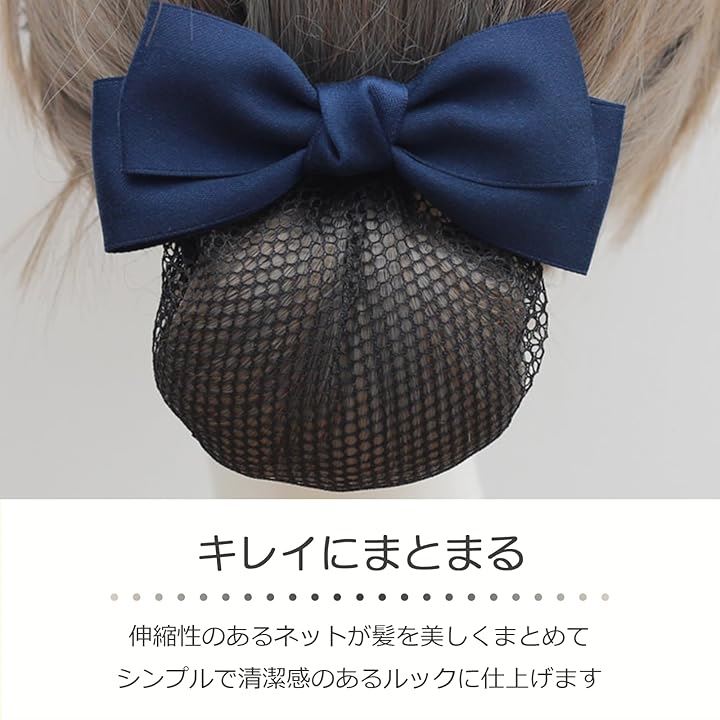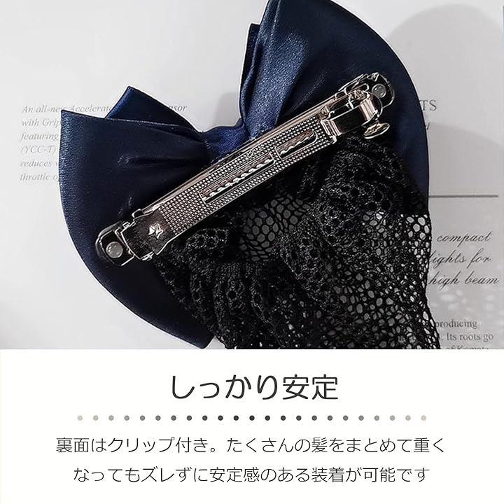 シニヨンネット リボン バレッタ ネット付き 髪 お団子 ヘアネット 3個 セット