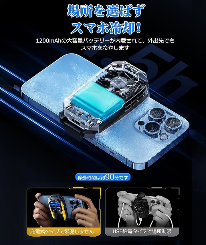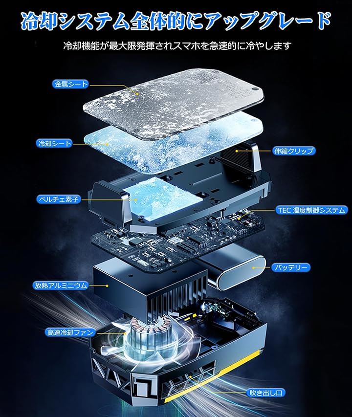 AF31 スマホ冷却ファン ペルチェ素子 スマホクーラー バッテリー内蔵 半導体冷却 小型 静音 Android/iPhone機種に適合 実況専用 ゲーム専用 スマホ熱対策 1200mAh