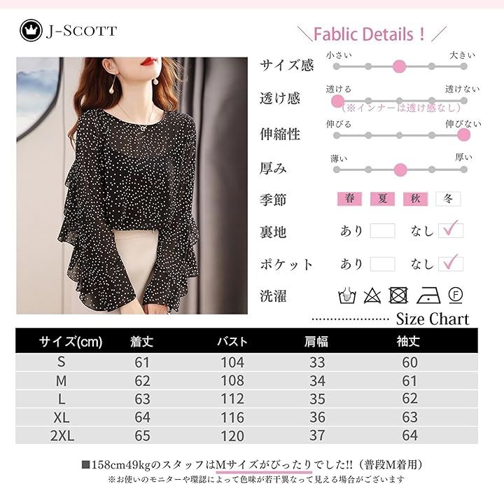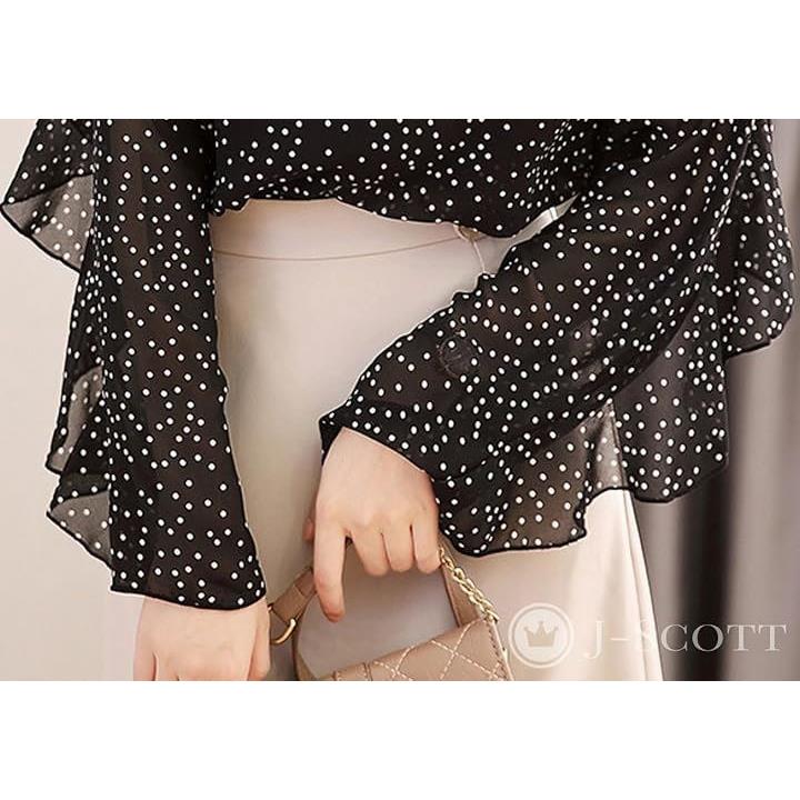 [J-Scott] インナーキャミ付き ブラウス レディース ドット柄 シフォン シアー フリル 長袖 ラウンドネック おしゃれ すてき 甘辛 柄 モード フリル袖 軽量 おしゃれブラウス 美ライン レディライク きれいめ 女性 細見せ シルク風 JS139 |