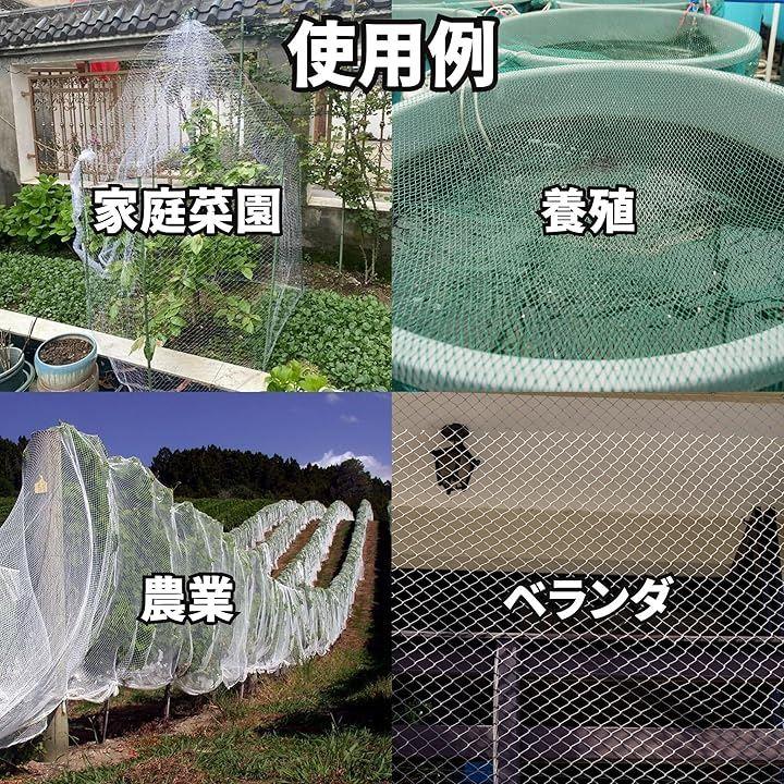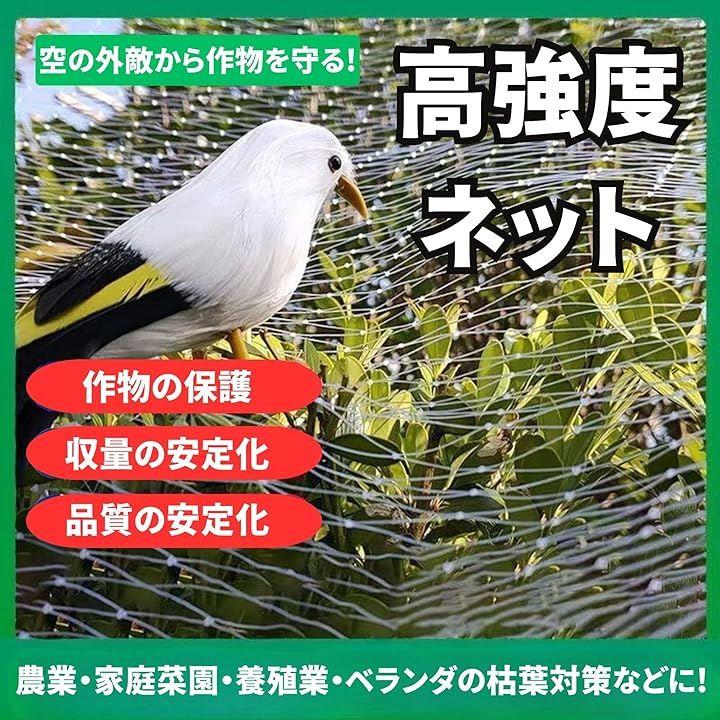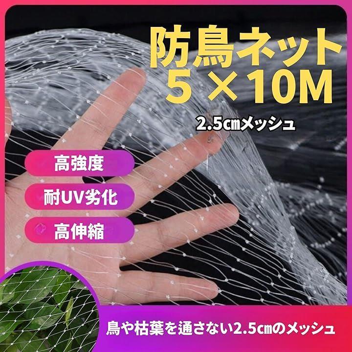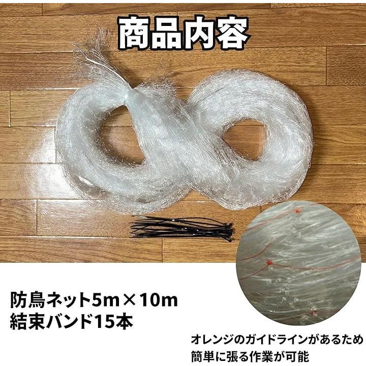 防鳥ネット 鳥よけネット ムクドリ対策 幅5mx長さ10m 結束バンド15本付 ベランダ 半透明 ナイロン糸 強力 高強度 軽量 網目2.5cm