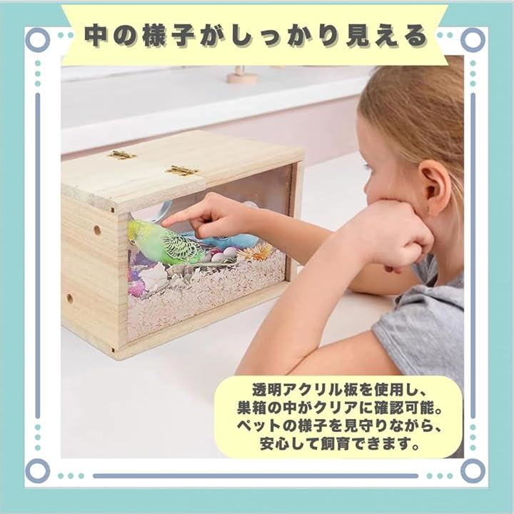 巣箱 鳥の巣 インコ 繁殖 繁殖箱 鳥かご 鳥の巣箱 天然木材 アクリル透明板