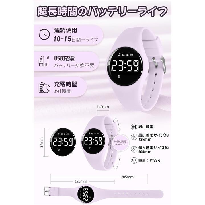 [USB充電式-長持ちバッテリー]:充電式 デジタル腕時計は便利な充電式のデザインを採用しており、使いやすく、電池交換も必要ありません。