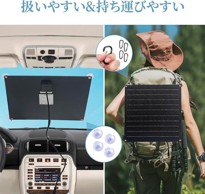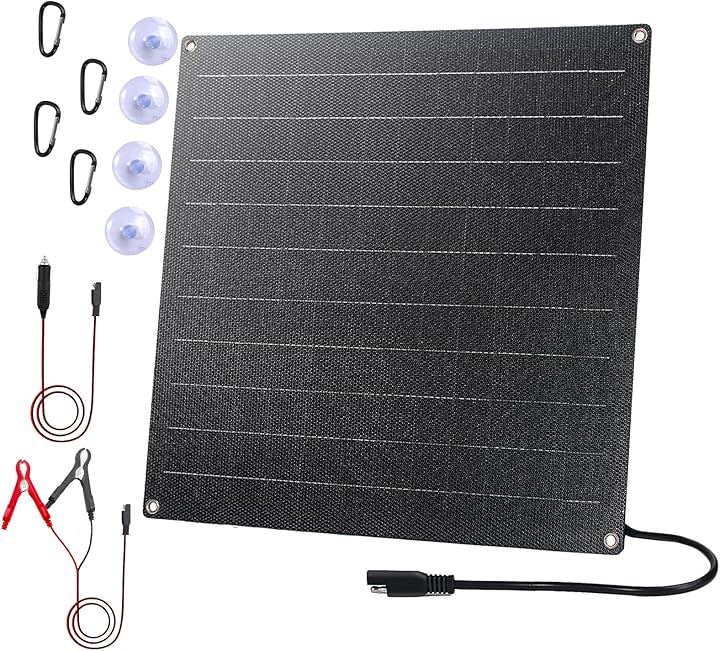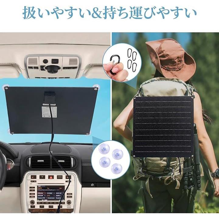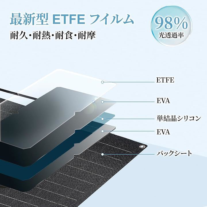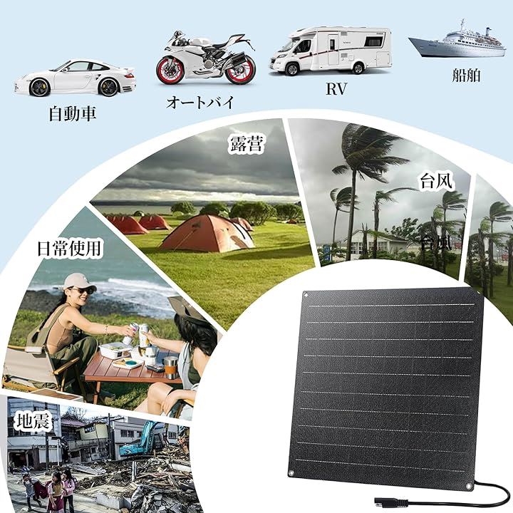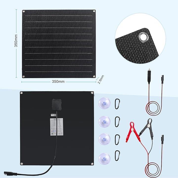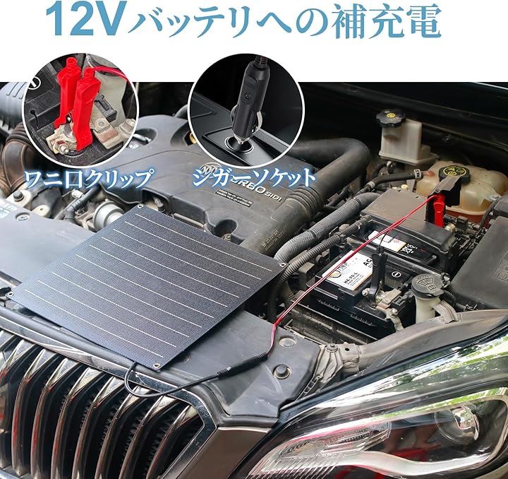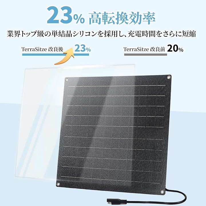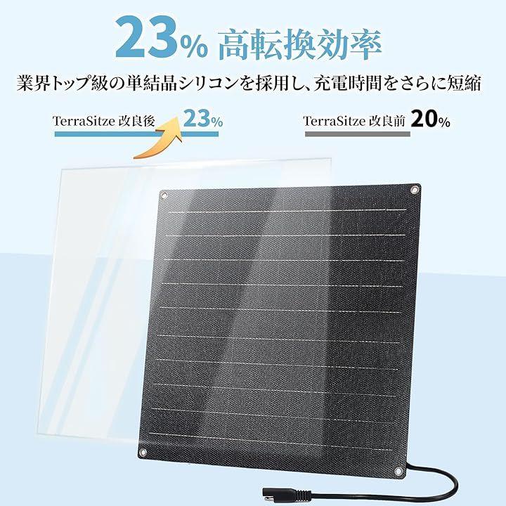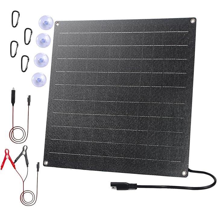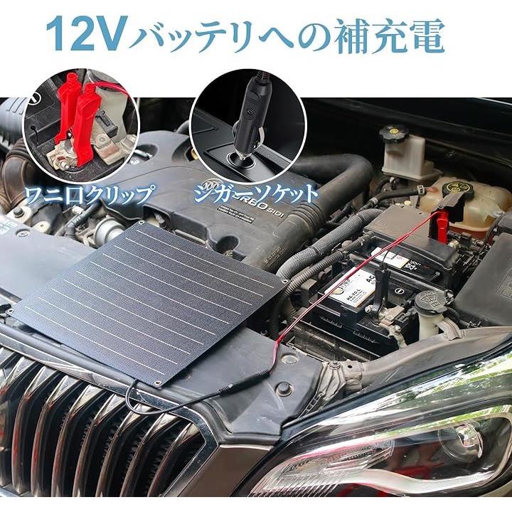 20W 単結晶 ETFE ソーラーパネル 12V ソーラーチャージャー ソーラー充電器 IP67防水 薄型軽量 SAE接続ケーブル ワニ口クリップケーブル シガーライタープラグつき 自動車、RV、ボート 12Vバッテリーへの補充電 防災グッズ