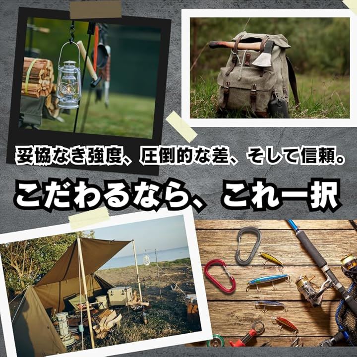 こんな方にオススメ。 軽くて強いカラビナを探している。 アウトドアや登山で荷物を安全に固定したい。 釣りやキャンプで頑丈なカラビナが欲しい。 作業現場で安心して使えるフックが必要。 災害時の備えとして強度のあるカラビナが欲しい。 軽量 x 高強度 の理想的なカラビナ。