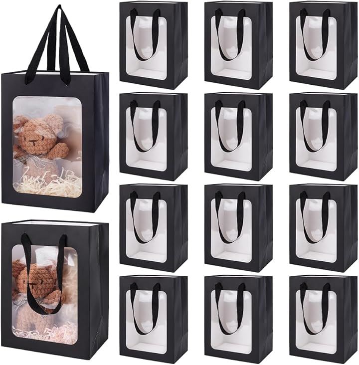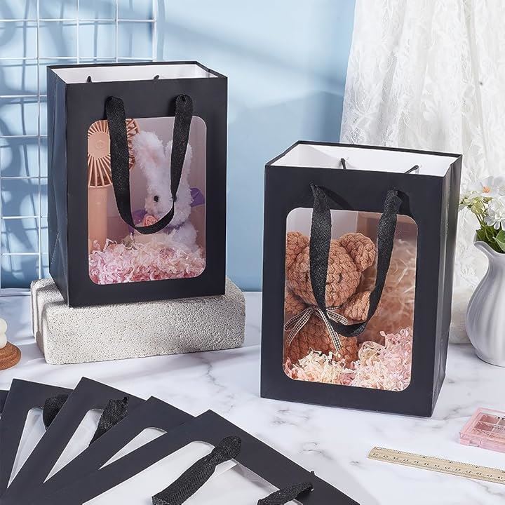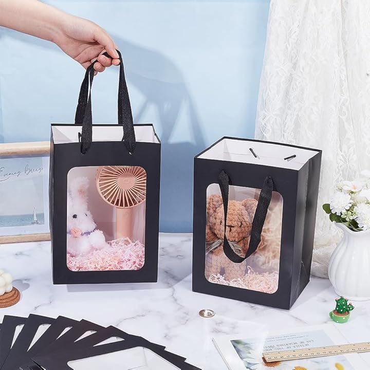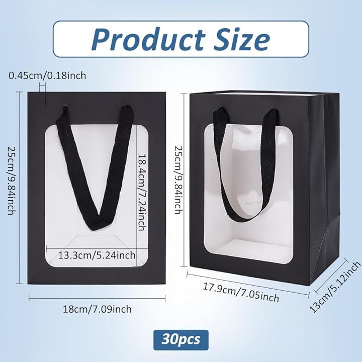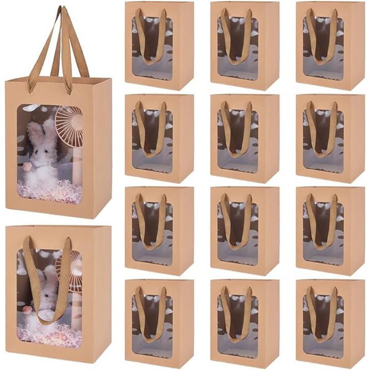 30枚 ギフト紙袋 手提げ紙袋 透明窓付 ラッピング袋 ギフトバッグ 厚手 ギフトボックス ハンドル付き ペーパーバッグ お祝い 贈り物 プレゼント包装