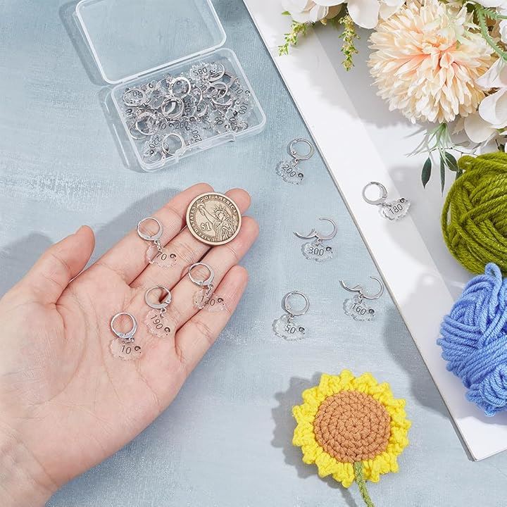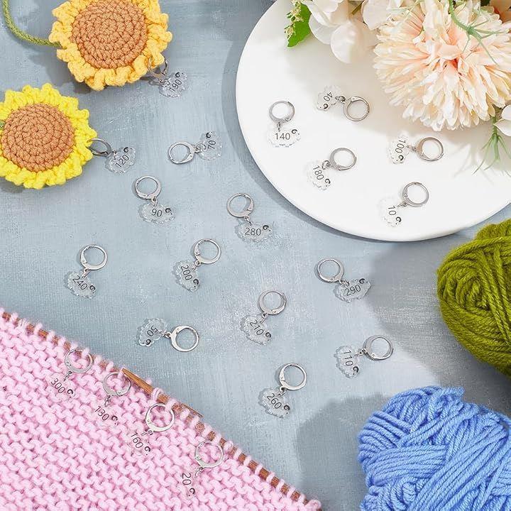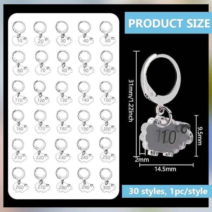 30点 ステッチマーカーチャーム 羊 アクリルペンダント 段数マーカー かぎ針編み用ローカウンター 段かぞえマーカーセット 段数リング 編み物ツール 収納ケース付き