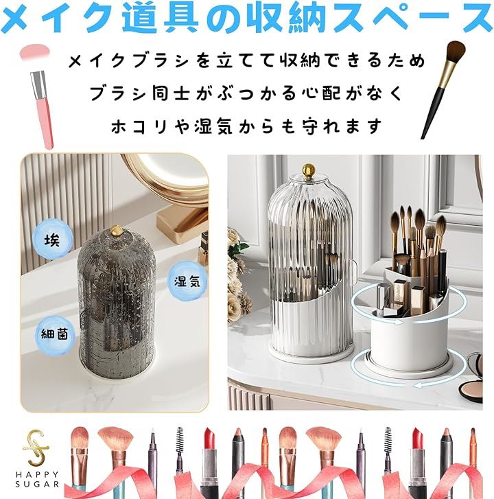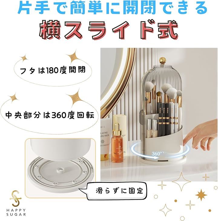 メイクブラシケース メイクブラシスタンド 収納ボックス 自立 蓋付き 仕切り 360°回転 大容量 可愛い