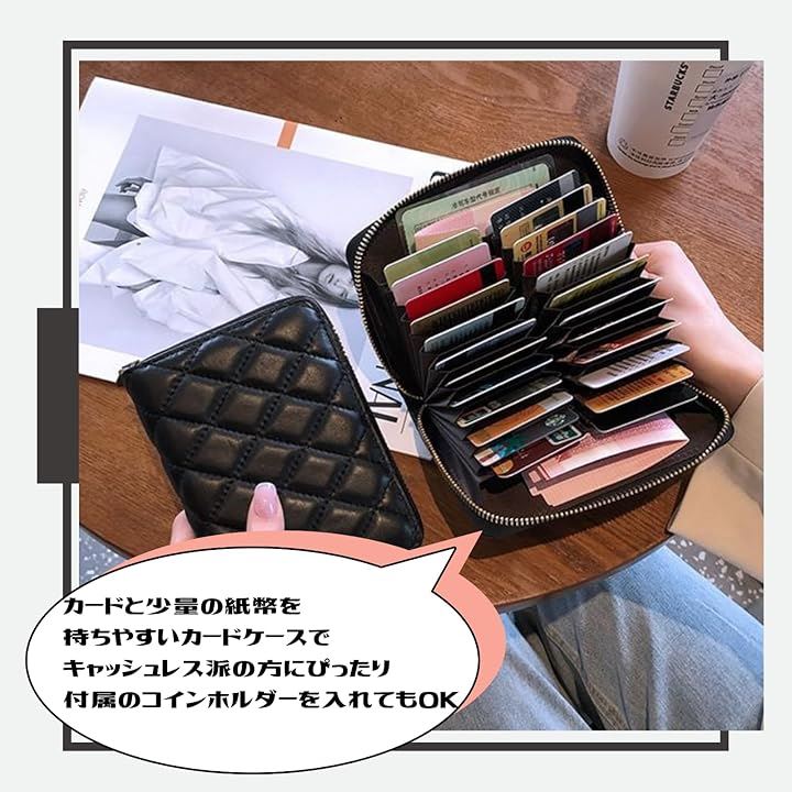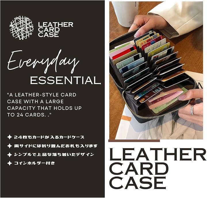 カードポーチ 黒 カードケース カードウォレット カードホルダー レザー 大容量 24枚 コインホルダー セット シンプル クレジットカードケース