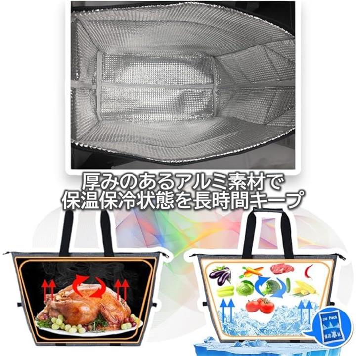 ケンアール 保冷バッグ 特大容量 トート 折りたたみ ファスナー クーラー エコバッグ 買い物 弁当 レジカゴ おしゃれ 自立 マチ広 軽量 大きめ シンプル 防水