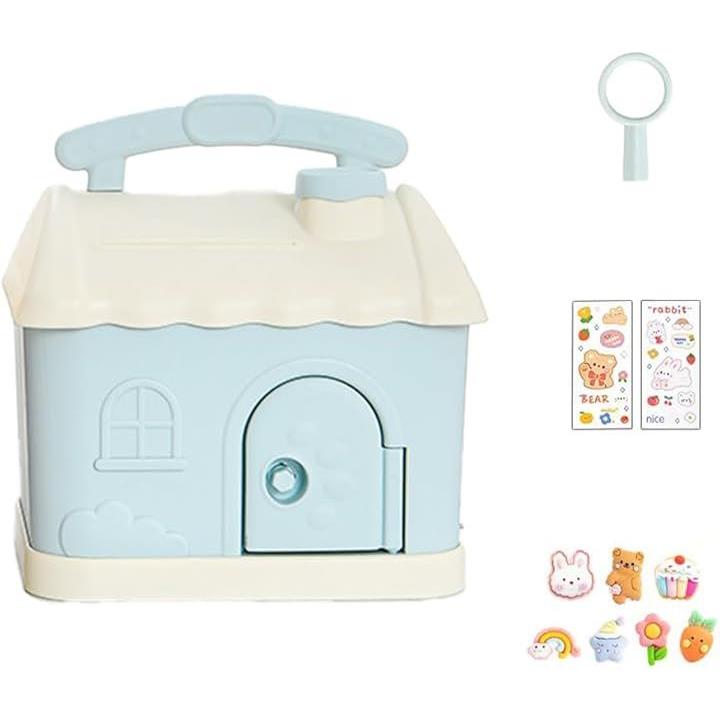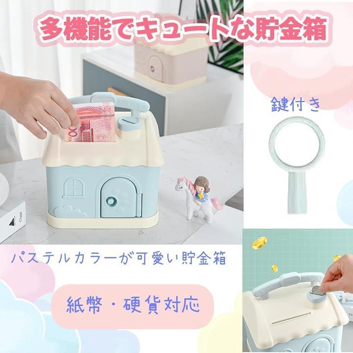 貯金箱 子供 可愛い かわいい 小さな家 鍵付き貯金箱 おもしろ おもちゃ お札 小銭