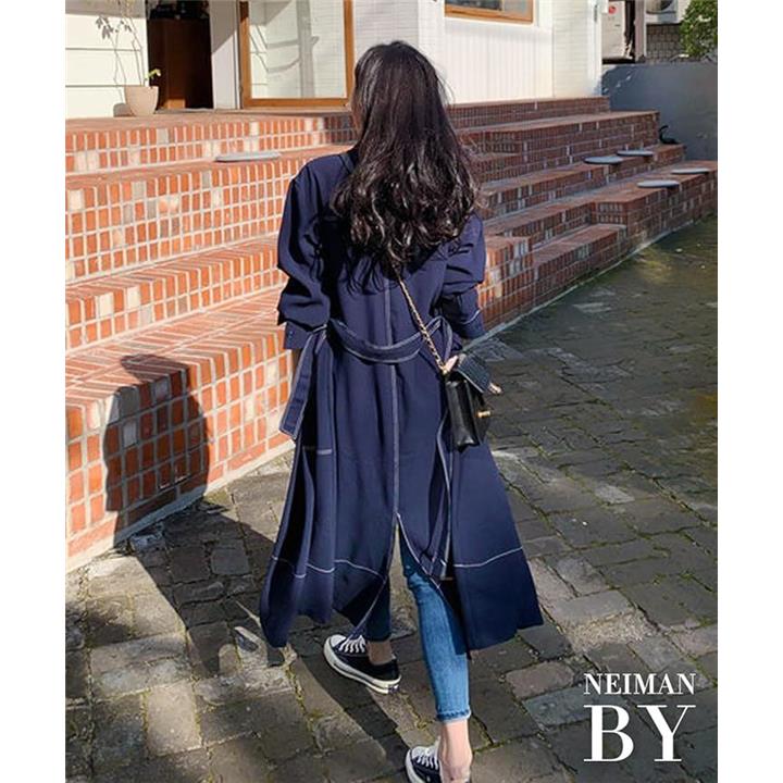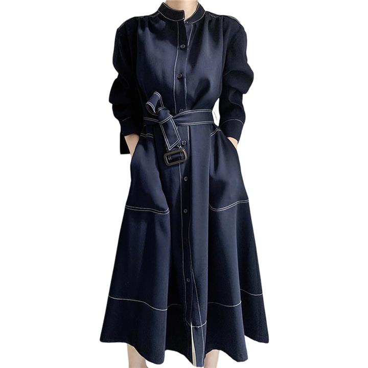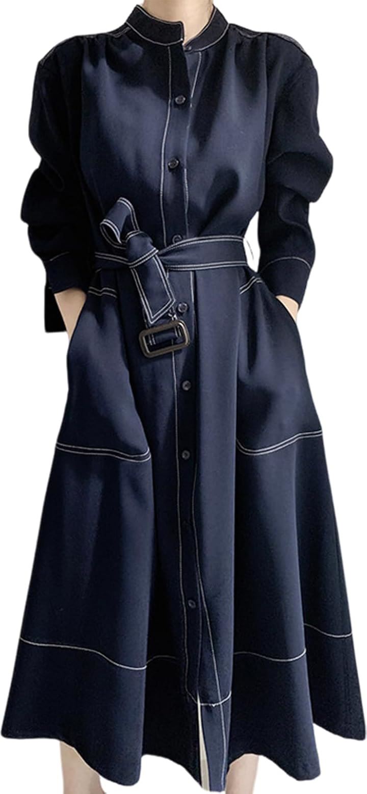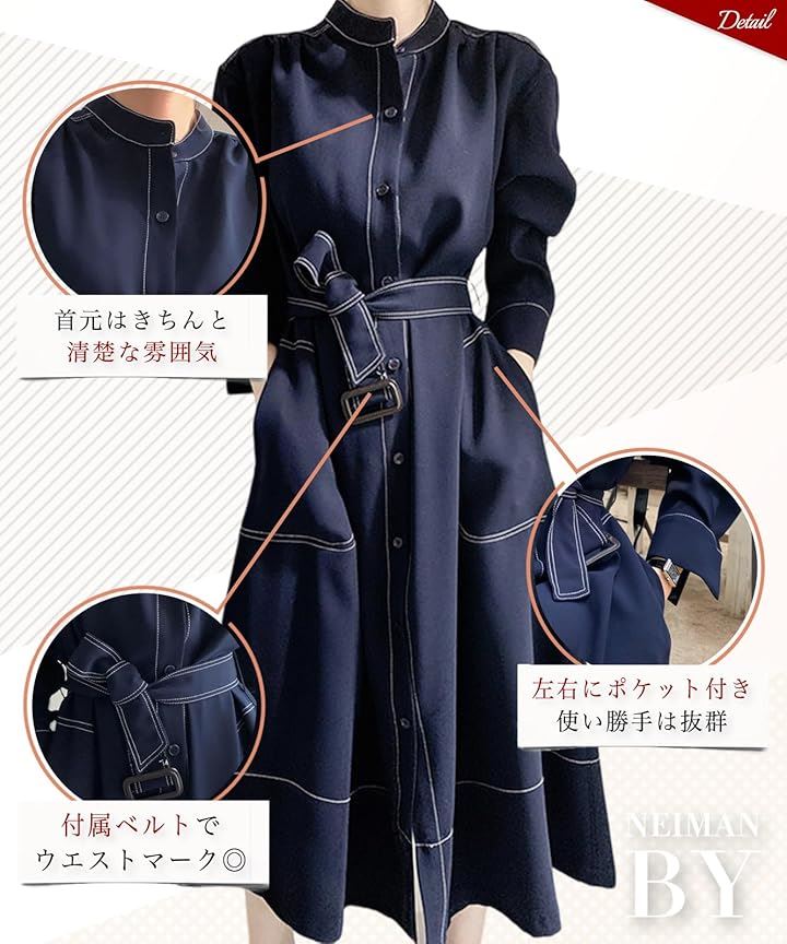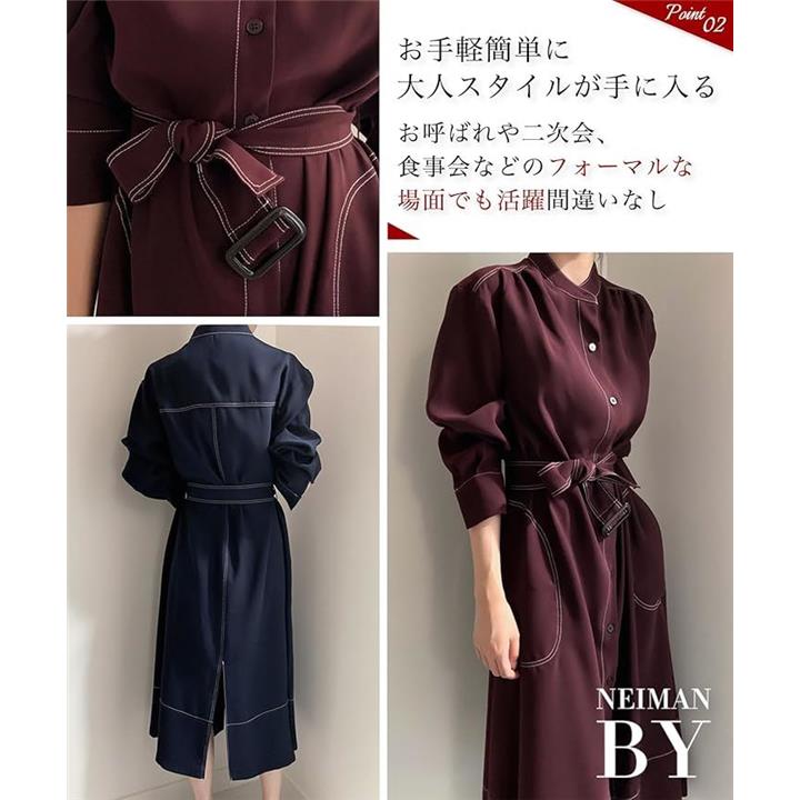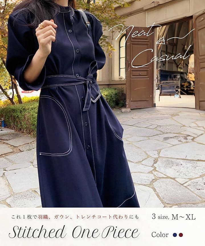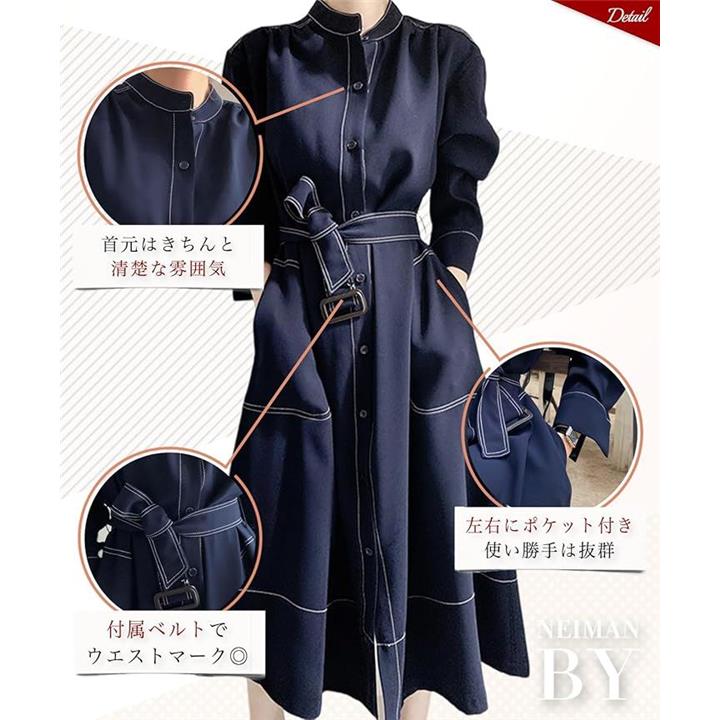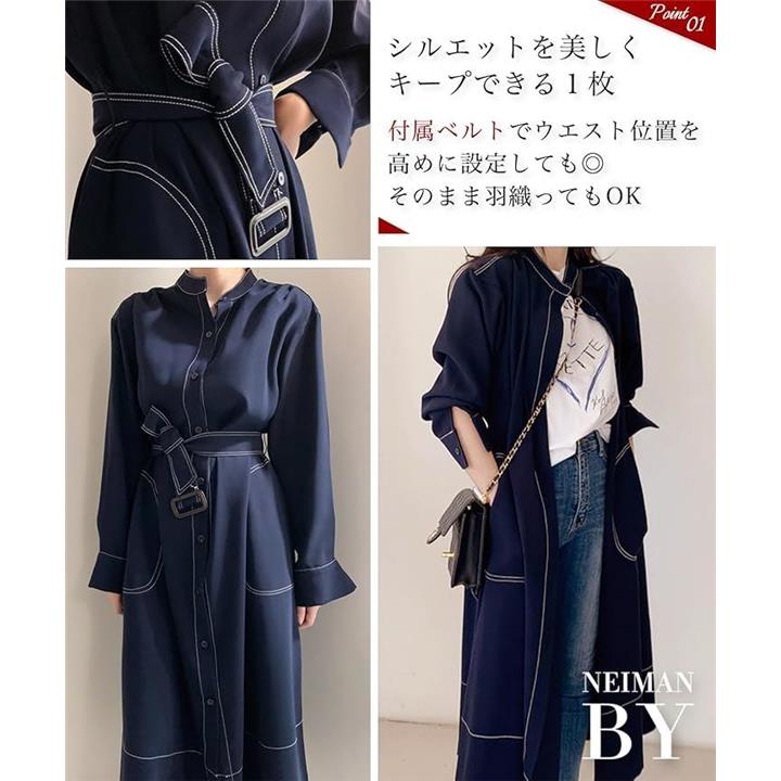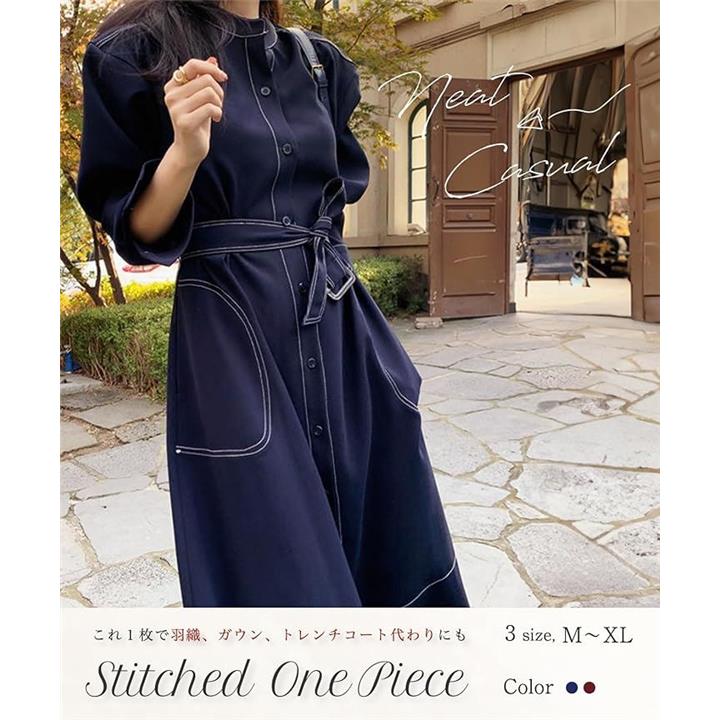 シャツワンピース ステッチ ロング フレア きれいめ カジュアル 羽織れる ウエストマーク