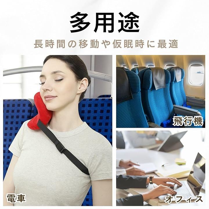 ネックピロー トラベルピロー モバイルピロー 昼寝枕 携帯枕 車 飛行機 新幹線 出張 旅行 セルフ 室内 安眠 持ち運び簡単