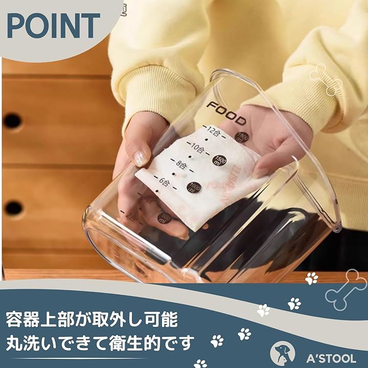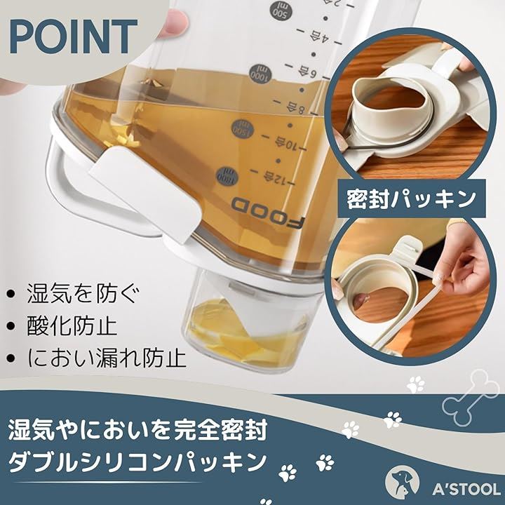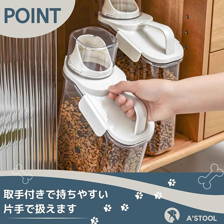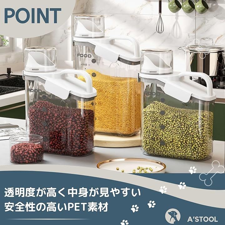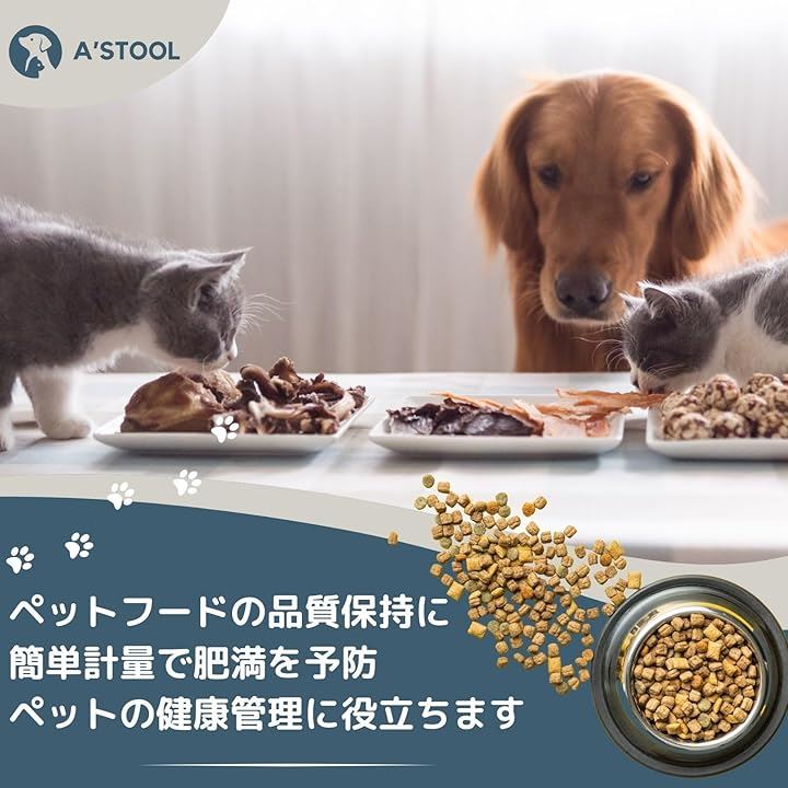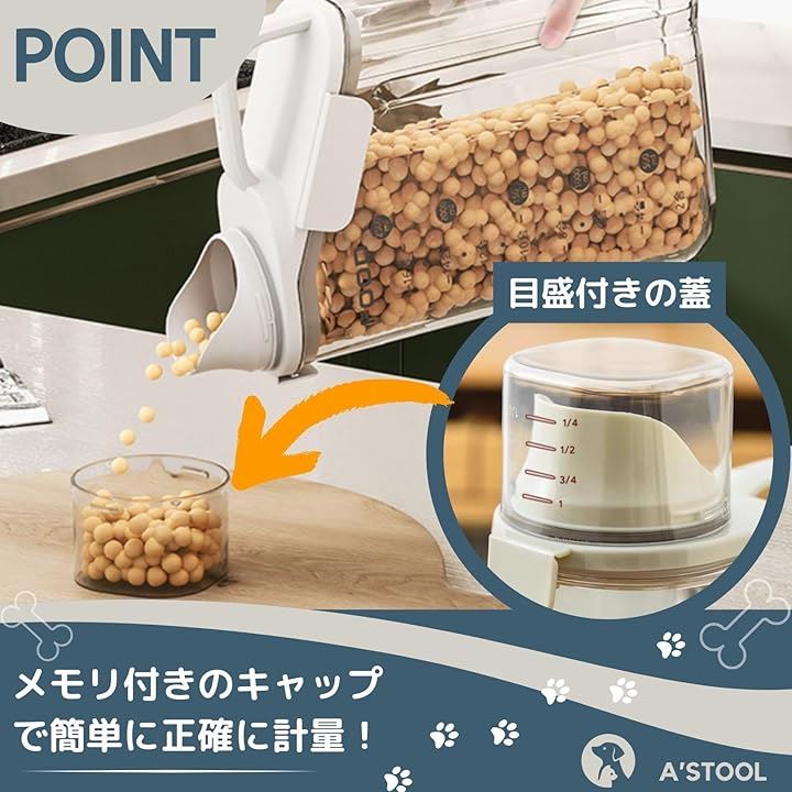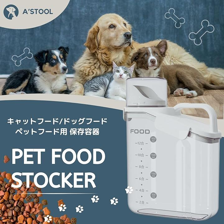 ペット用フードストッカー 保存容器 大容量 計量カップ付き ペットフード 犬 猫 餌 健康管理 キャットフード ドッグフード 密閉 密封 餌の鮮度を保つ 収納 スリム キャニスター