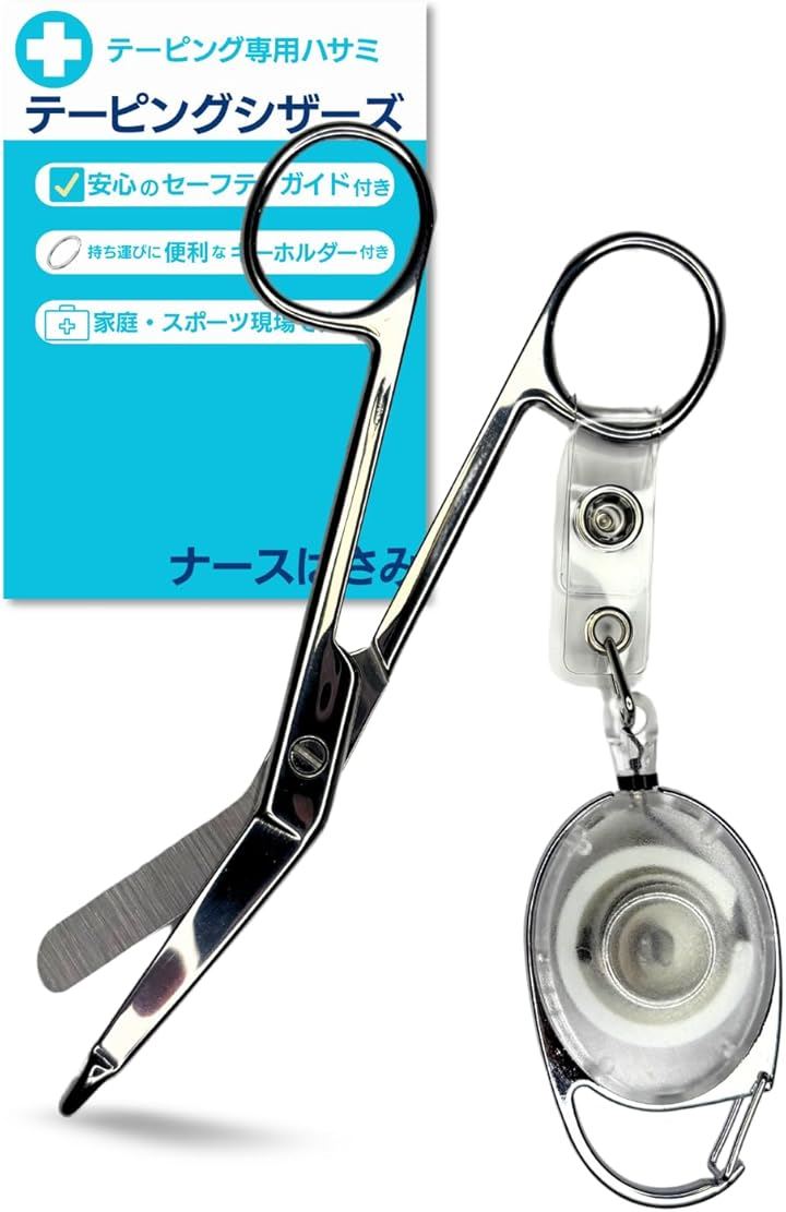テーピング用ハサミ キーホルダー付き テーピングシザーズ シザース はさみ ナースハサミ 先端ガード付き セーフティチップ 安全ガイド付