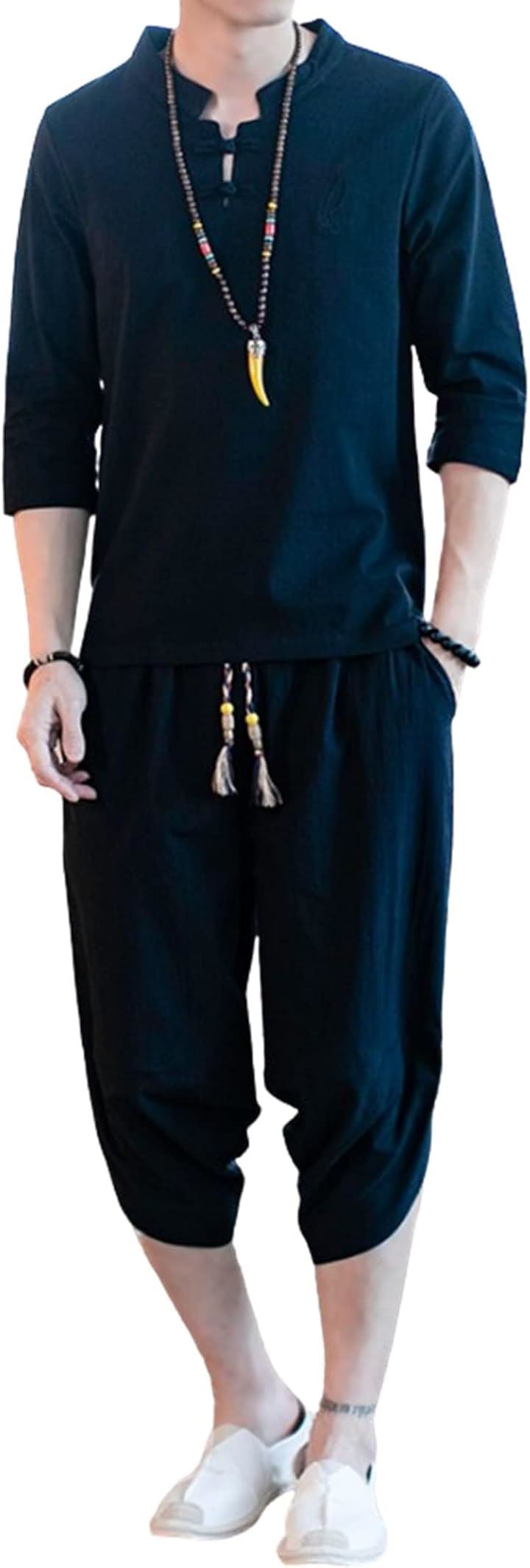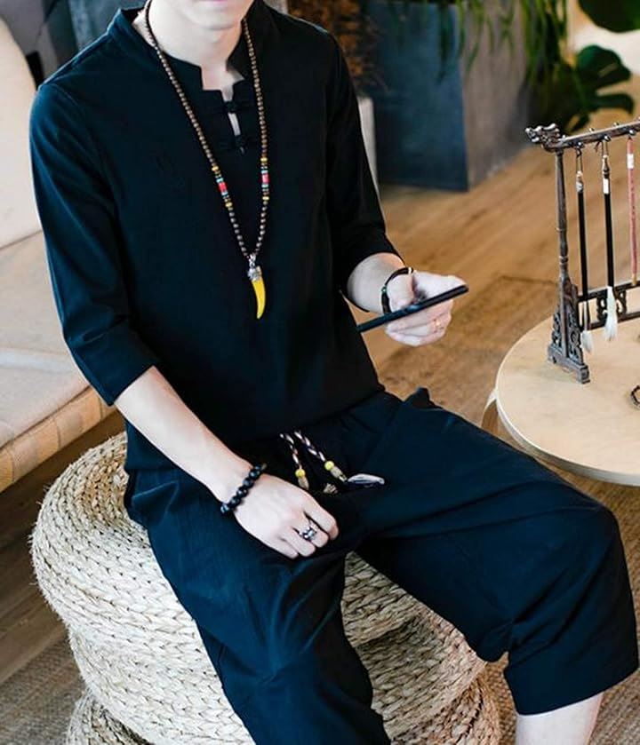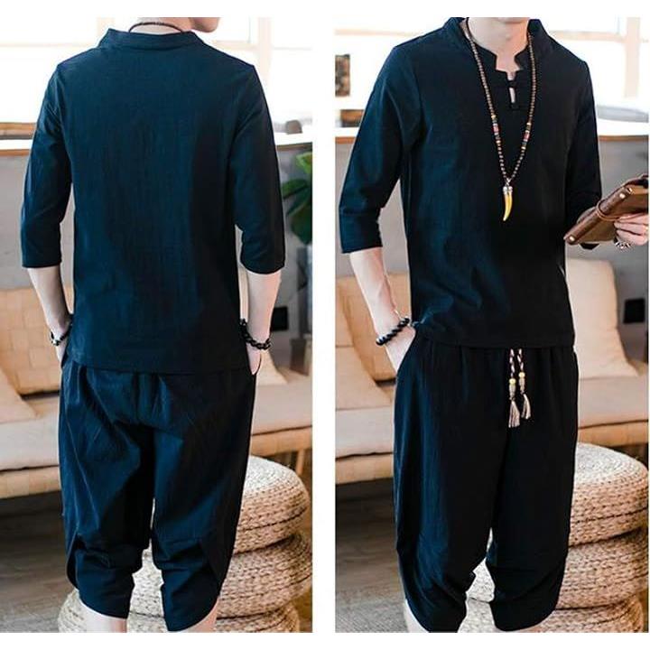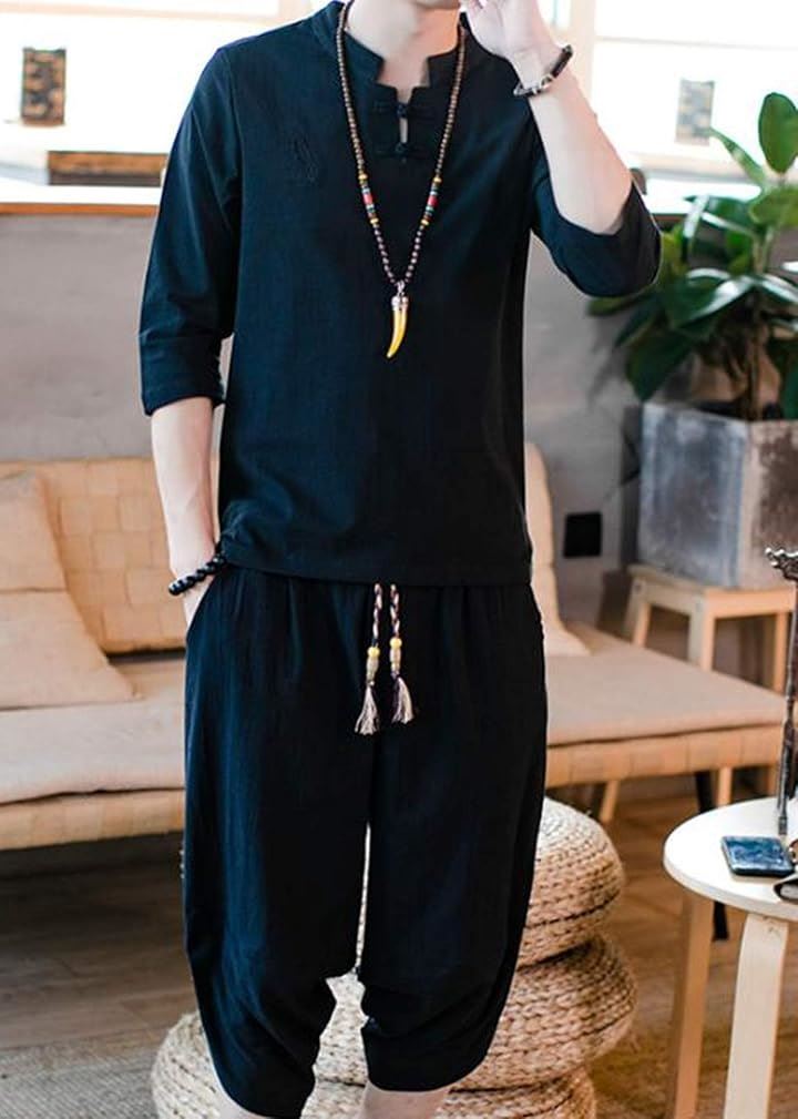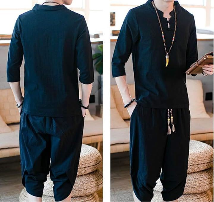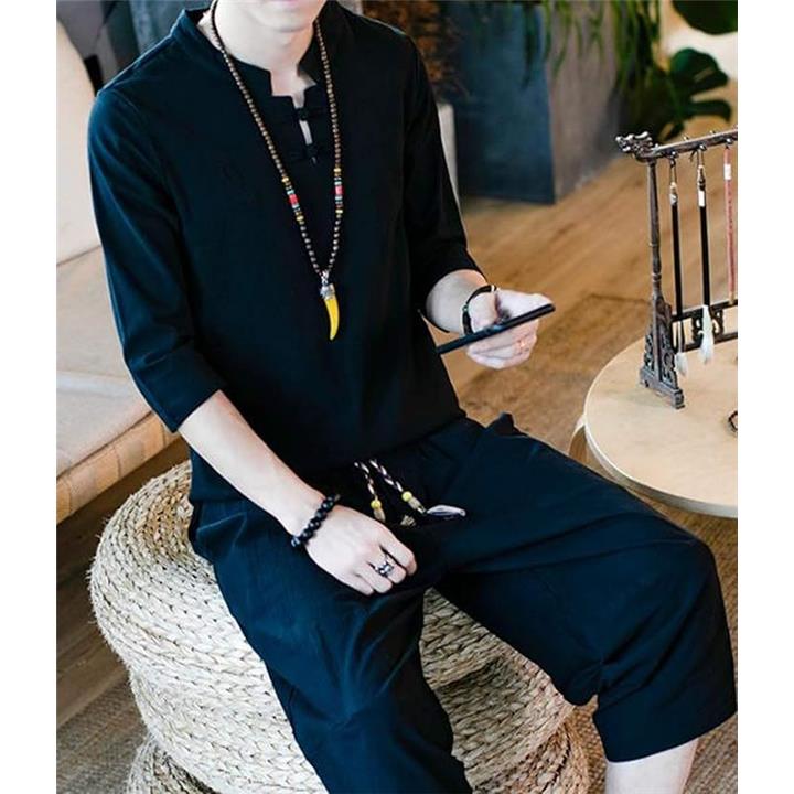 [CosMisty] 甚平 メンズ 半袖 作務衣 浴衣 麻 亜麻 リネン 男性用 夏祭り 花火 大会 しじら織り 大きいサイズ セットアップ 刺繍 |