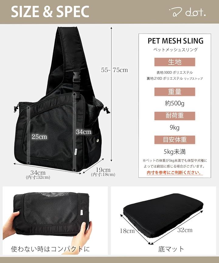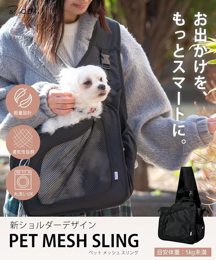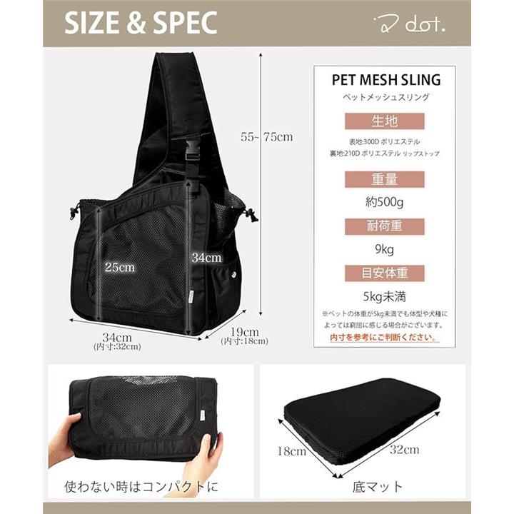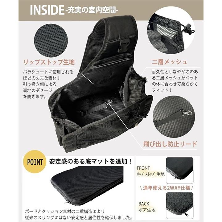 犬 スリング 抱っこ紐 ペット 猫 小型犬 ペットスリング 5kgまで対応 キャリーバッグ 軽量 コンパクト ポケット 飛び出し防止 リード 2wayマット リップストップ お散歩 犬用 猫用