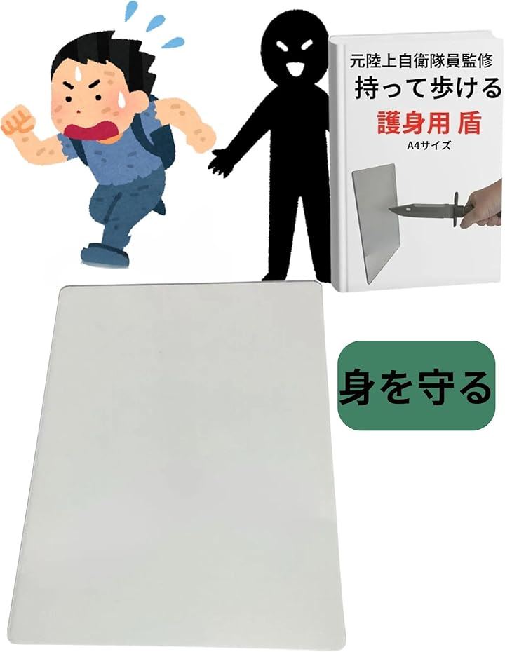 護身用 防犯 グッズ ポリカーボネート 板 盾 防刃 防護 A4 サイズ 5mm厚 携帯用 海外旅行