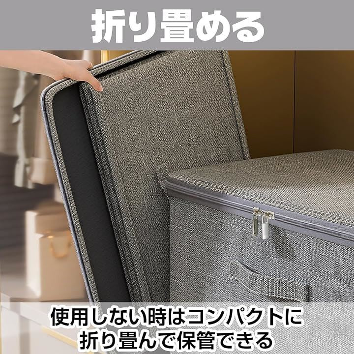 「高品質な素材」 この収納ボックスは、通気性に優れた布製素材を使用しており、衣類や布団を湿気やホコリから守ります。