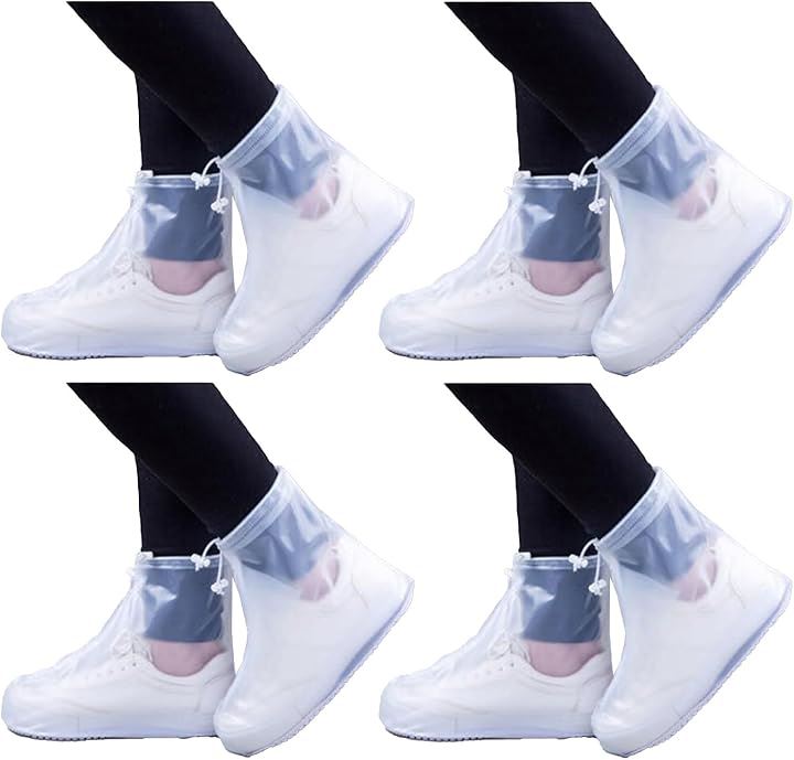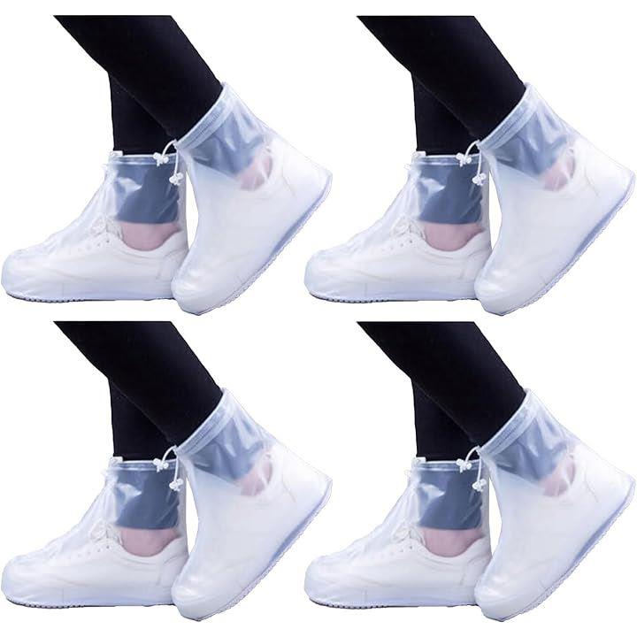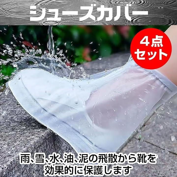 シューズカバー 4足セット レインシューズカバー 防水 靴カバー 軽量 雨 雪 梅雨対策 滑り止め 通勤 通学 登山 散歩