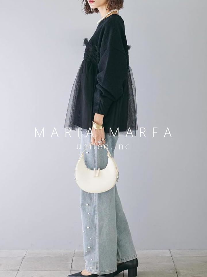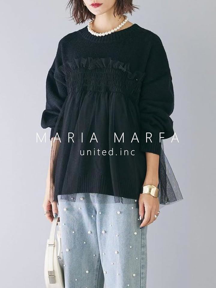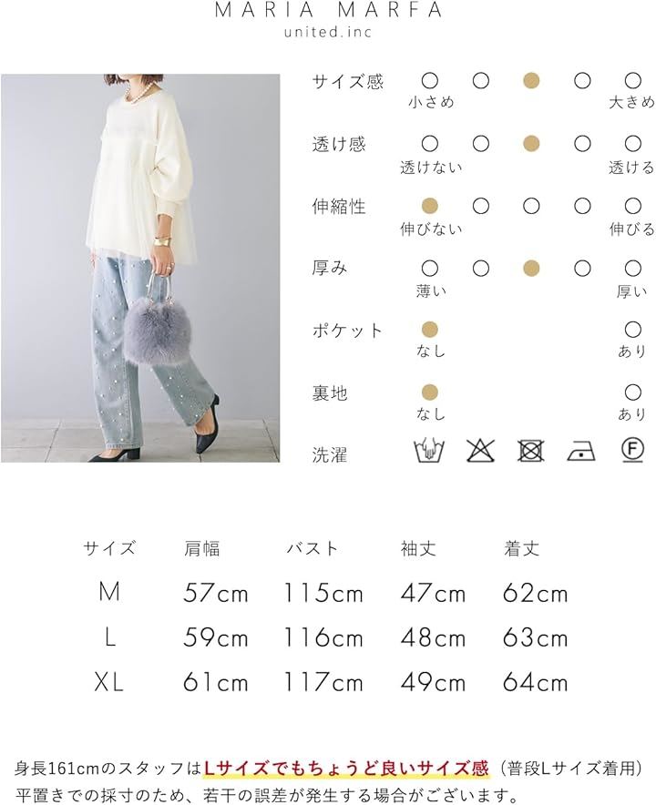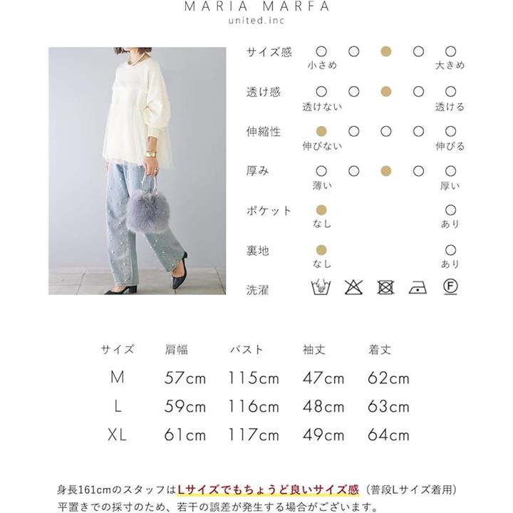[MARIA MARFA] レディース 春 トップス ニット ゆったり 可愛い 大人 清楚 透明 清潔 清潔感 クルーネック 夏 5S-M02 |