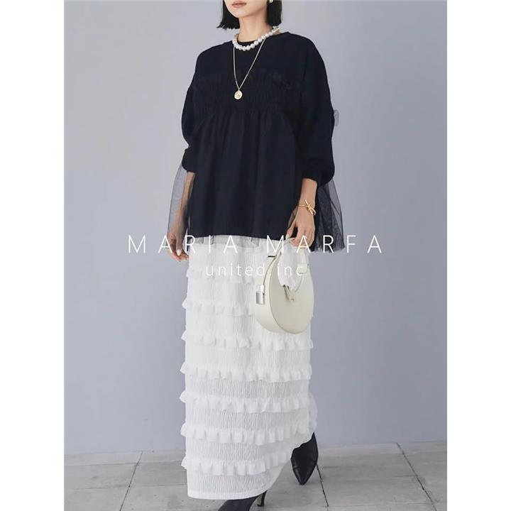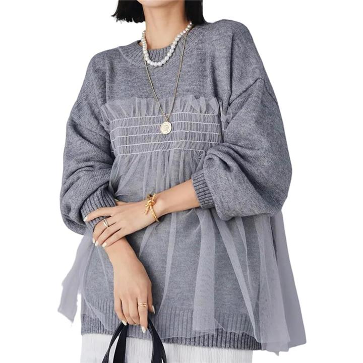 チュールが施された透明感のある涼しげなプルオーバーが登場しました。