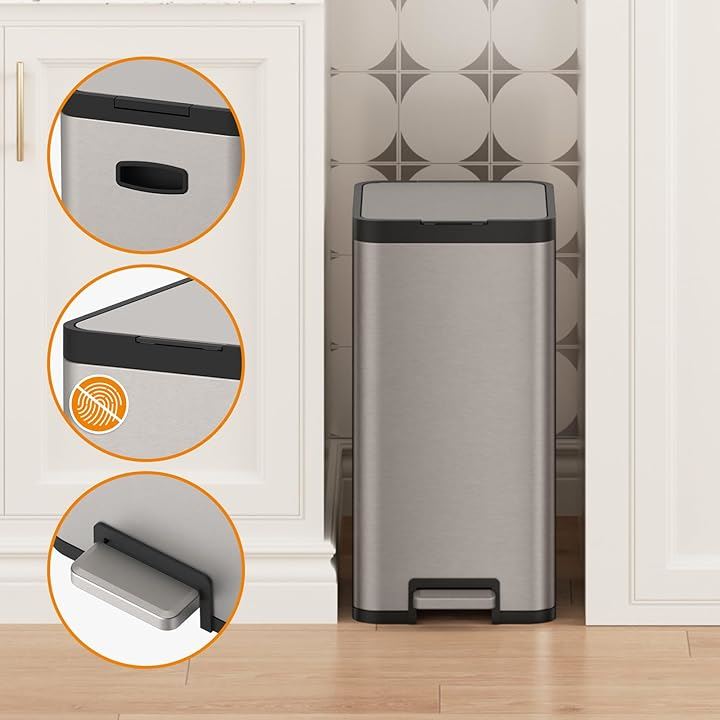 ふた付き ゴミ箱 おしゃれ ステンレス スリム ペダル式 連結可能 複数組合 キッチン 消臭 ダストボックス 大容量 生ゴミインナーバケット付き 密閉 音なし 室内