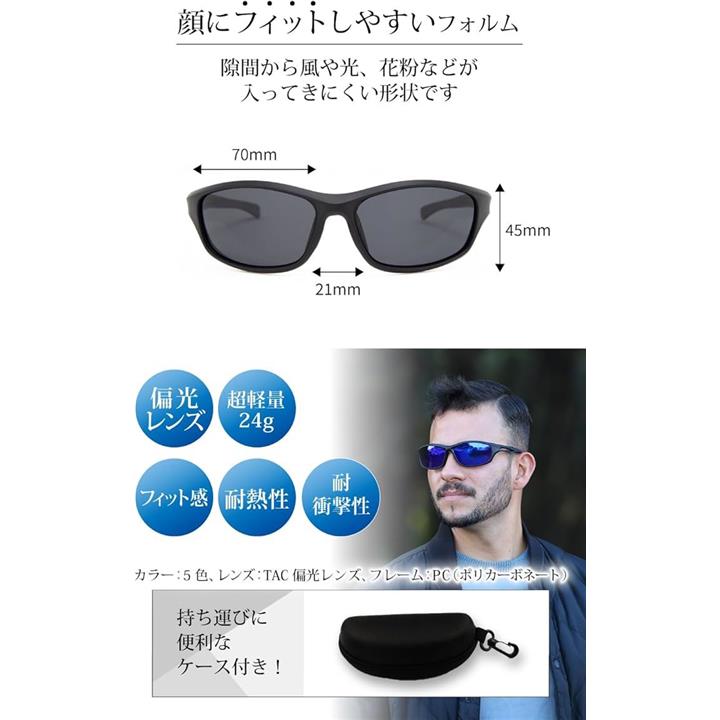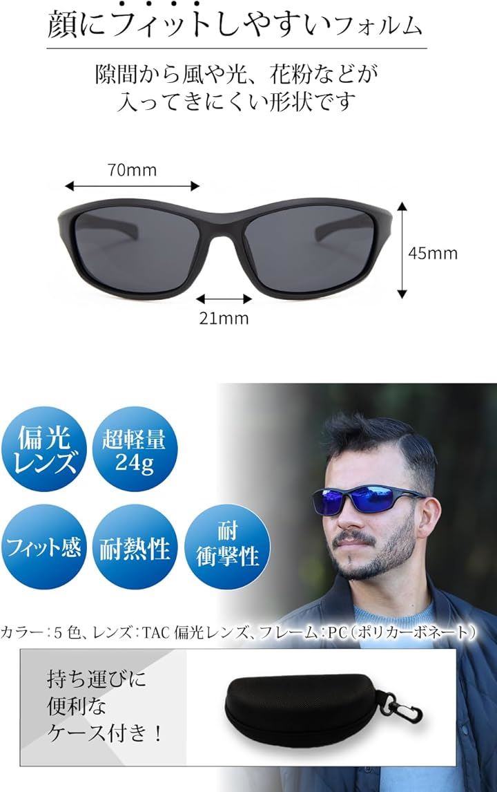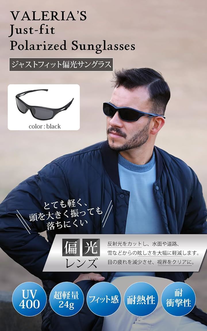 ヴァレリア 偏光 サングラス 防風・防花粉になるフィット感 ハードケース付き スポーツ アウトドア UV400