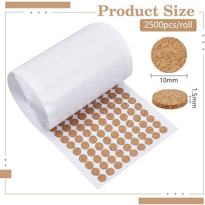 2500枚 コルクパッド 自己粘着 コルクシート コルクマット 丸いコルクディスク 椅子マット 滑り止め家具保護材 保護コルクディスク 傷防止
