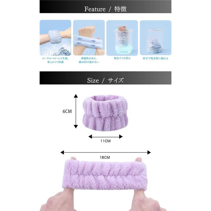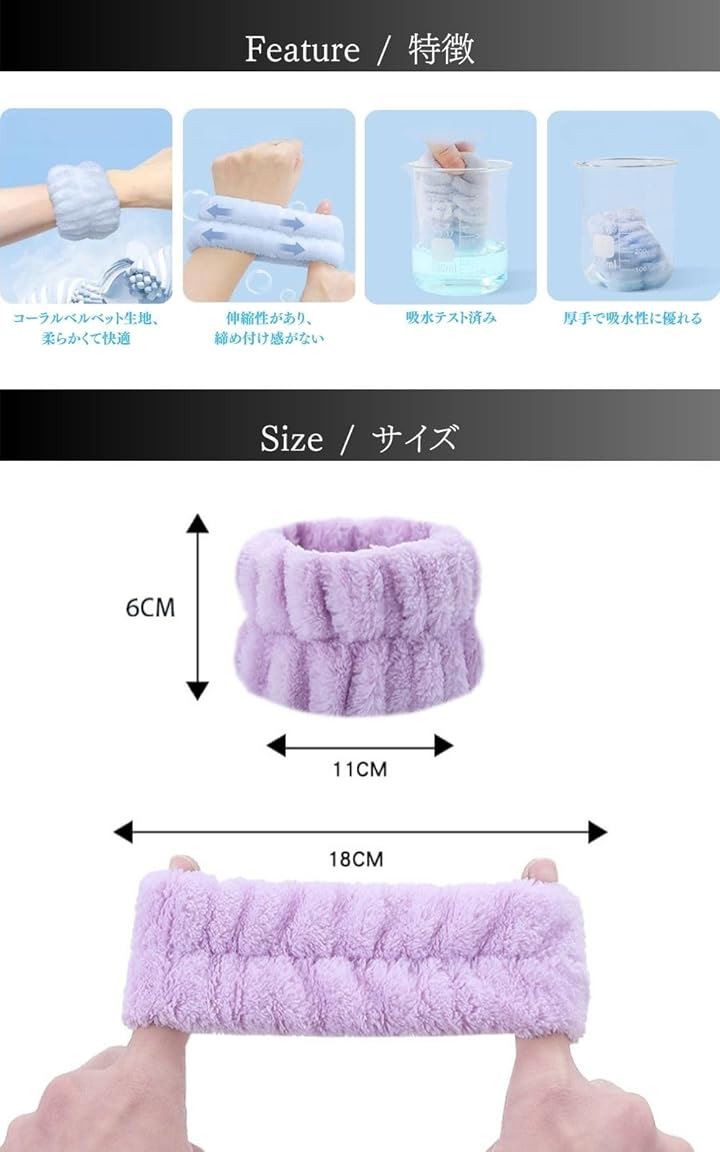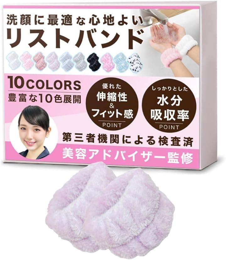 リストバンド 洗顔 さっと乾く、しっかり吸う。毎日のケアを楽しく 吸水 速乾 伸縮性 手首バンド ウォッシュバンド どんな腕の太さにもフィットする伸縮性 ヘアバンド ふわふわ 柔らかい コットン製