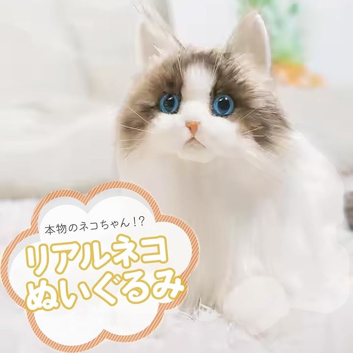 猫 リアル ぬいぐるみ 本物そっくり 猫のぬいぐるみ ねこ ネコ ふわふわ インテリア ネコ好き 長毛 白 人形 ドール 置物 高齢者 ペットロス 持ち運び