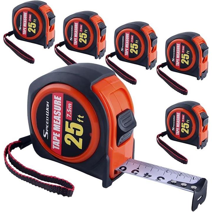 6本セット マグジャケット 7.5m メジャー 自動ロック式巻尺 テープメジャー セルフロッキングテープメジャー ベルトホルダー付き 自動巻き取り 目盛り オートロック式