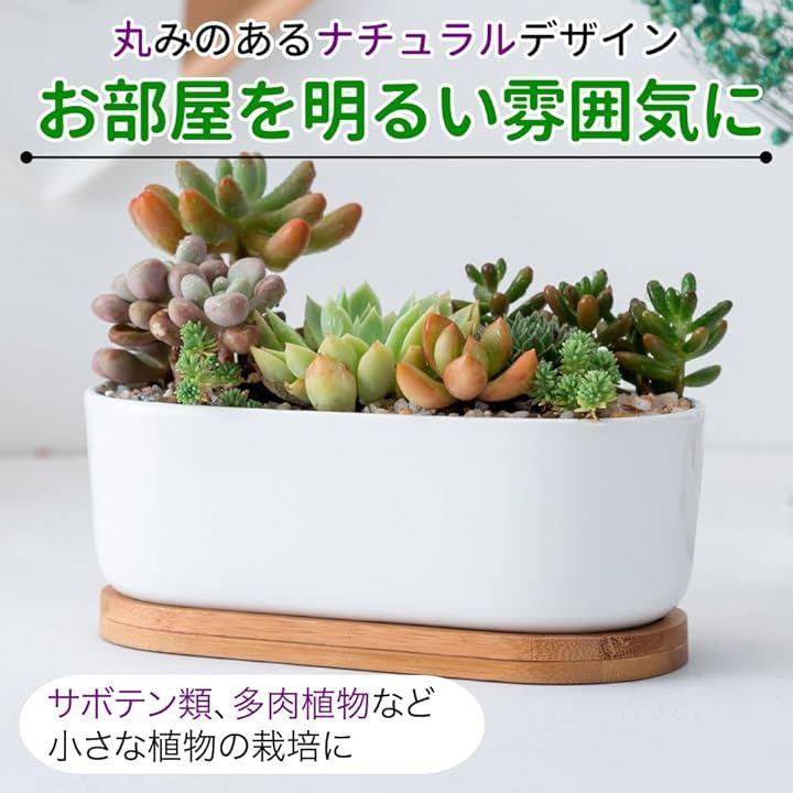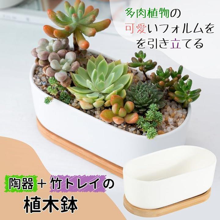 植木鉢 サボテン鉢 陶器鉢 底穴付き トレイ付き 楕円 多肉植物鉢 シンプル 通気性
