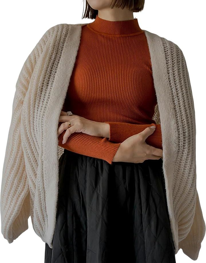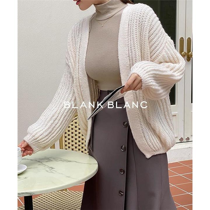 カーディガン レディース ニット トップス セーター ゆったり 大きめ 長袖 ビッグ バルーンスリーブ 体型カバー 着痩せ