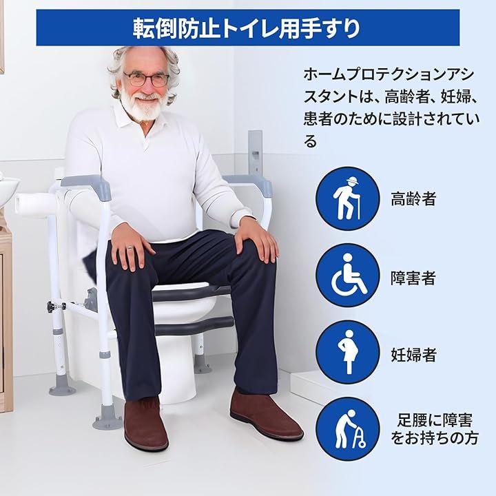 最大耐荷重250kg トイレ手すり 工事不要 補助便座 組立簡単 高さ65-78cm 調整可能 介護用 ポータブルトイレ 身体障害者 高齢者介護 妊産婦 腰痛 足首の手術をして者 日本語説明書付き