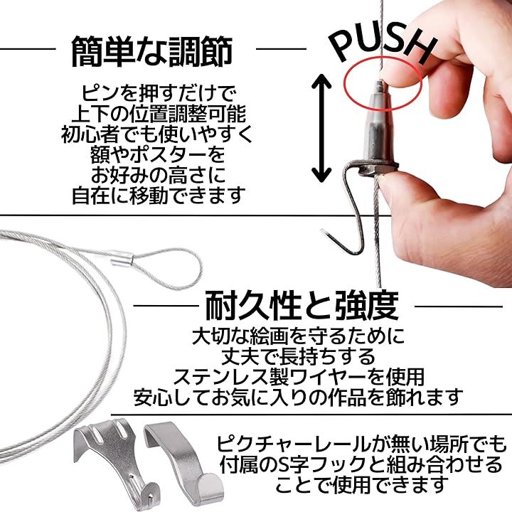ピクチャーレール ワイヤーロープ 絵画 壁掛け 金具