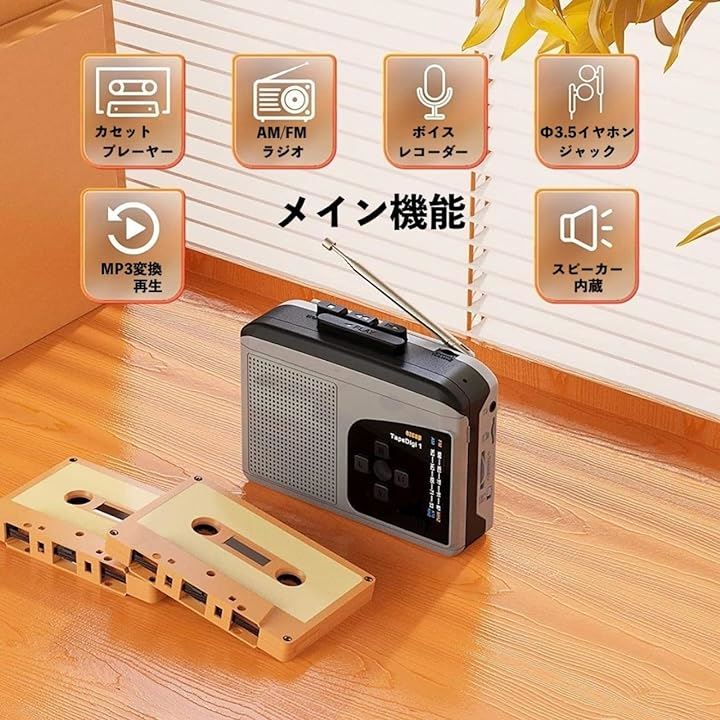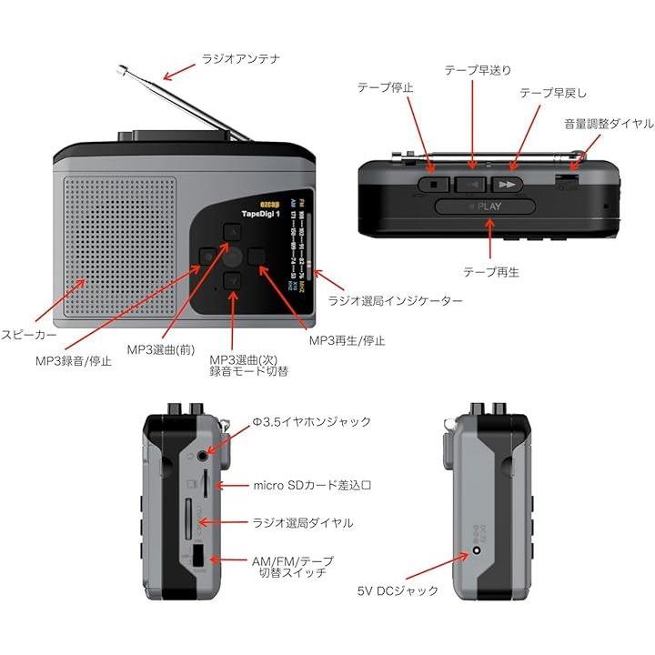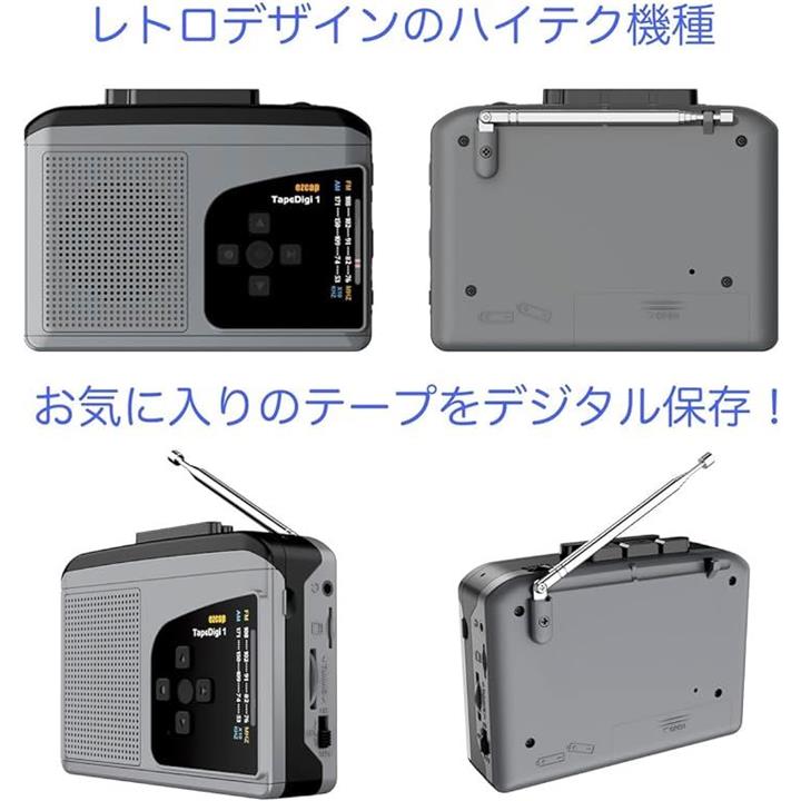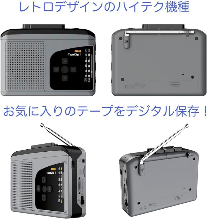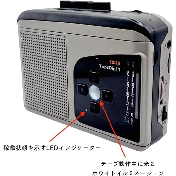 《 日本語説明書付き》ezcap TapeDigi1 ポータブルカセットプレーヤー パソコン使用しないMP3変換プレーヤー microSDカードに簡単録音 カセットテープデジタル化 AM/FMラジオ 外部スピーカー レトロデザイン プレゼント USB電源供給