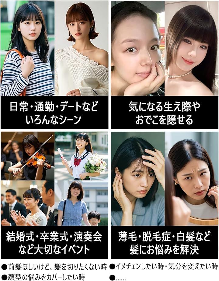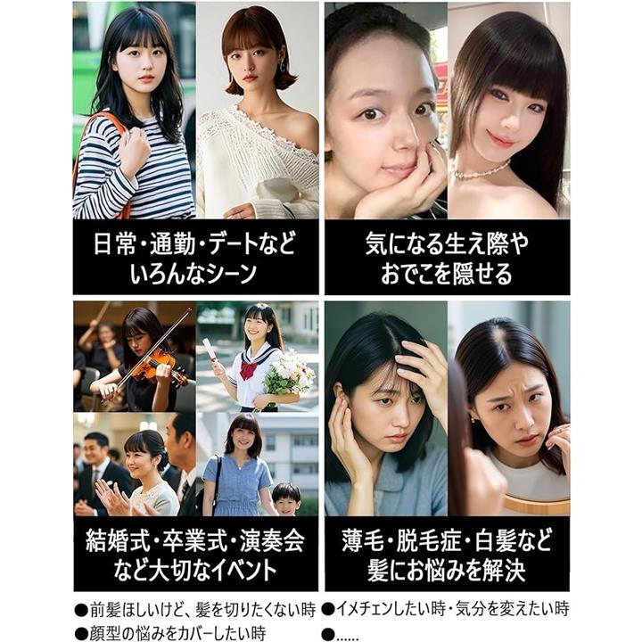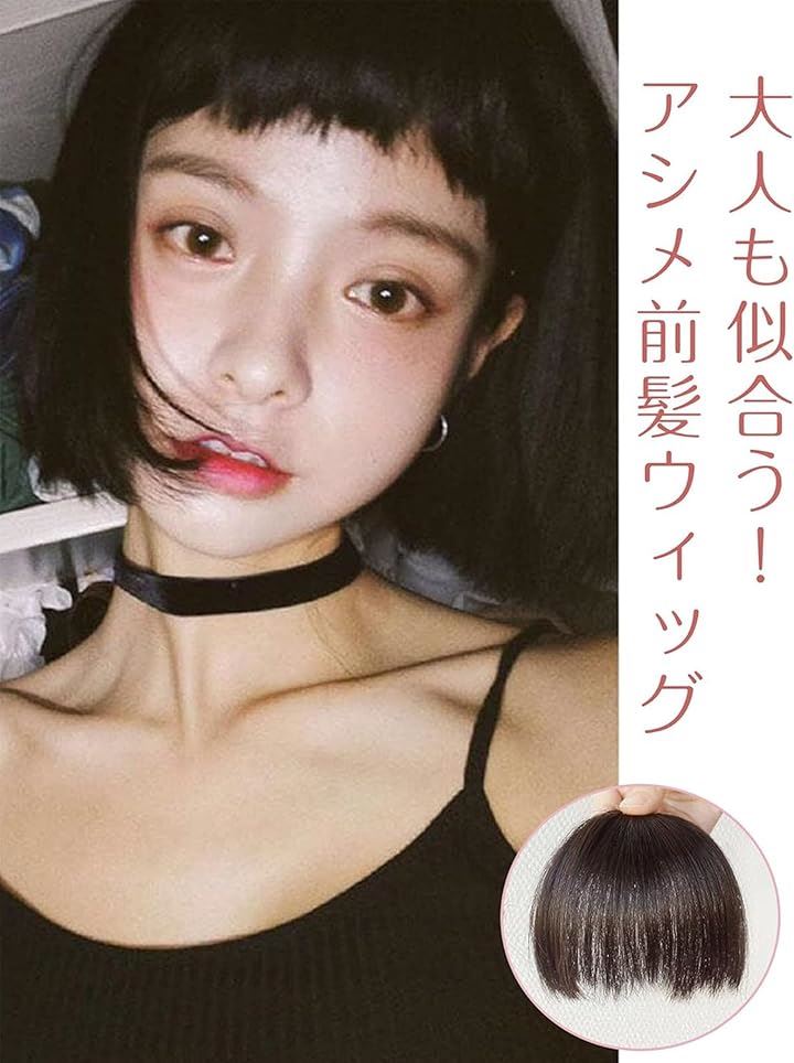 前髪 ウィッグ アシメ ぱっつん 自然 部分ウィッグ 総手植 ポイントウィッグ 仮装 日常