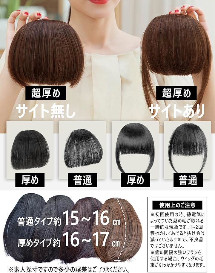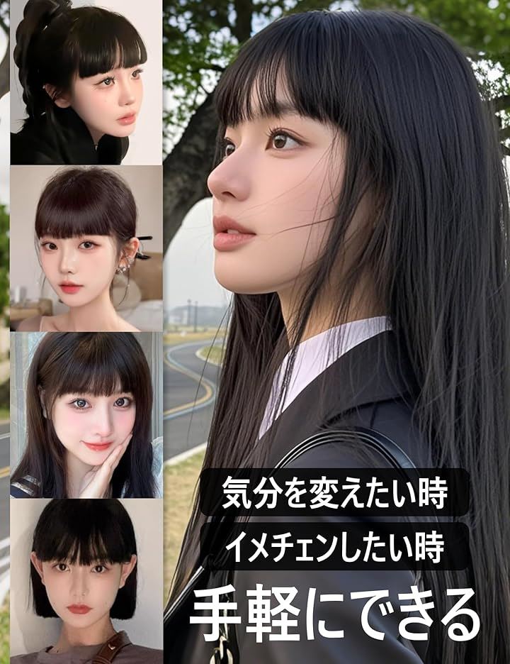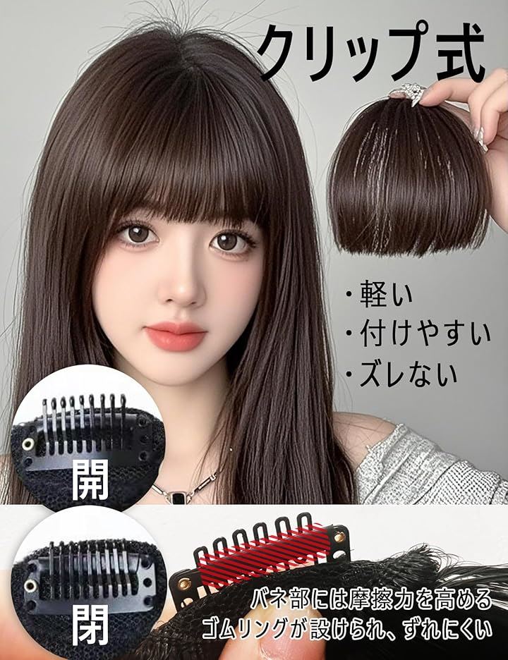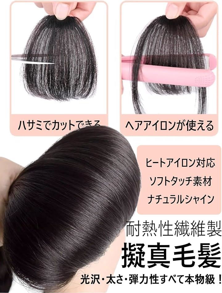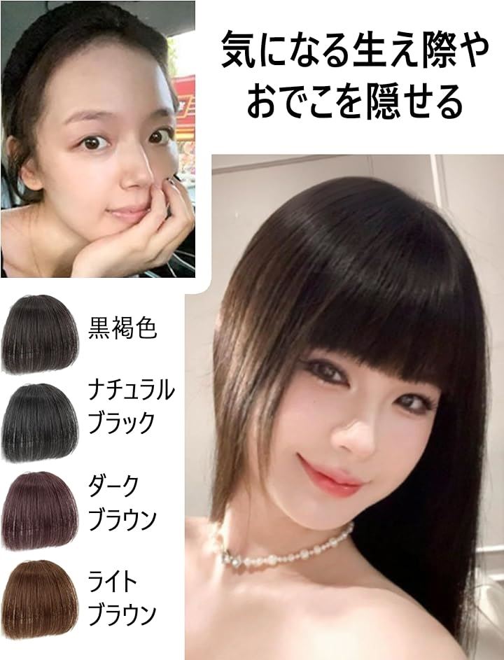 前髪ウィッグ ぱっつん 厚め 自然 総手植 部分ウィッグ ポイントウィッグ 仮装 日常