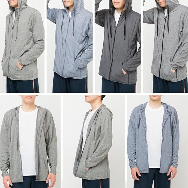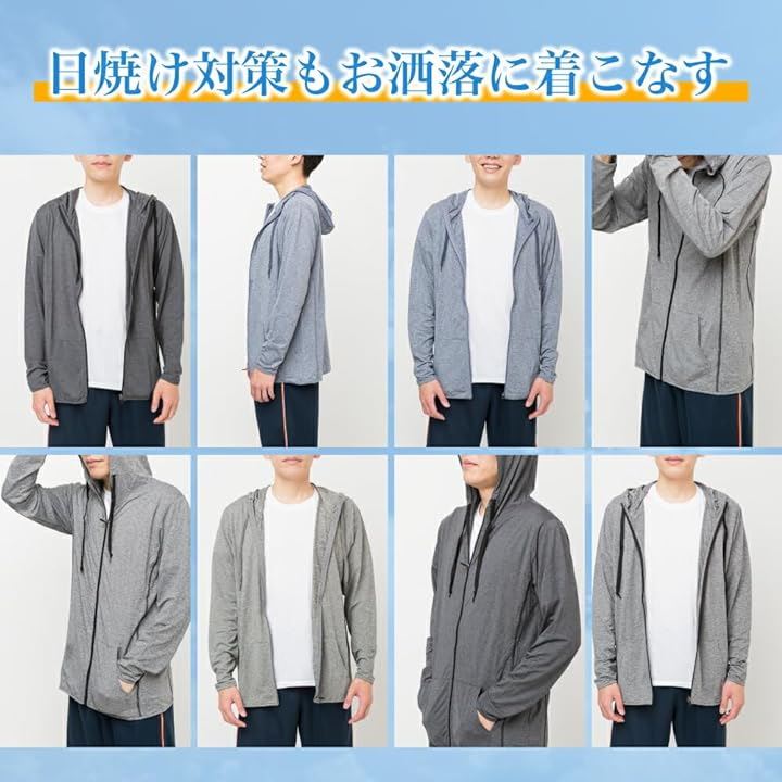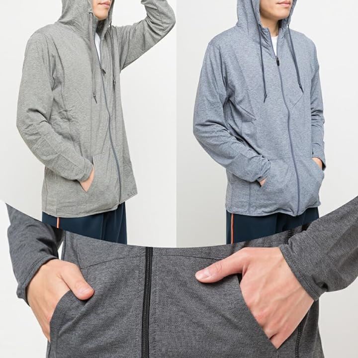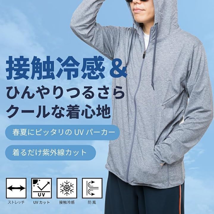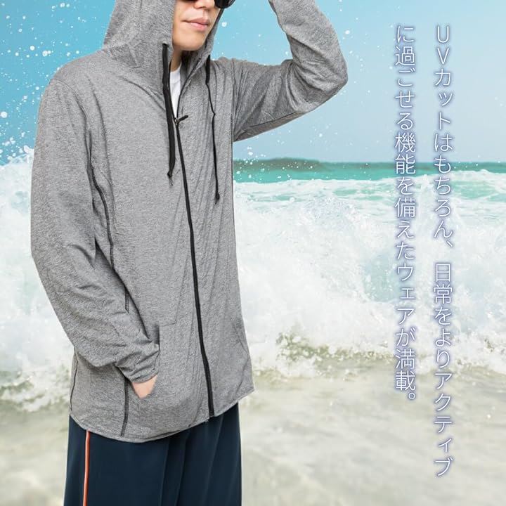 [Y's factory] ジップパーカー メンズ ストレッチ 接触冷感 長袖 フード付き UVカットラッシュガード 紫外線対策 ラッシュパーカー アウター 吸汗速乾 薄手 |