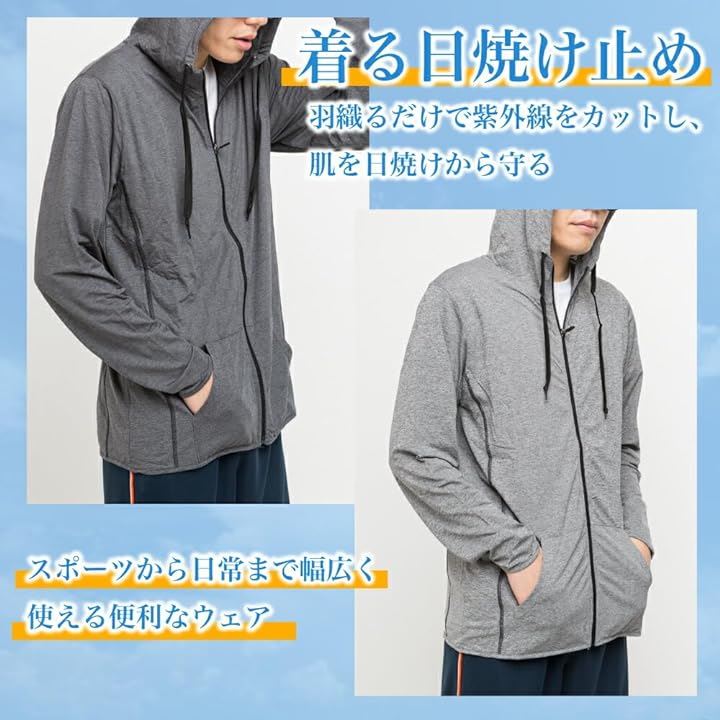 「日焼け対策はバッチリ」 この日焼け止めパーカーはUVカット性能のランクUPF50+でお肌に有害な紫外線を99%カット. 羽織るだけで紫外線をカットし、夏の強い日差しから肌を守ります。