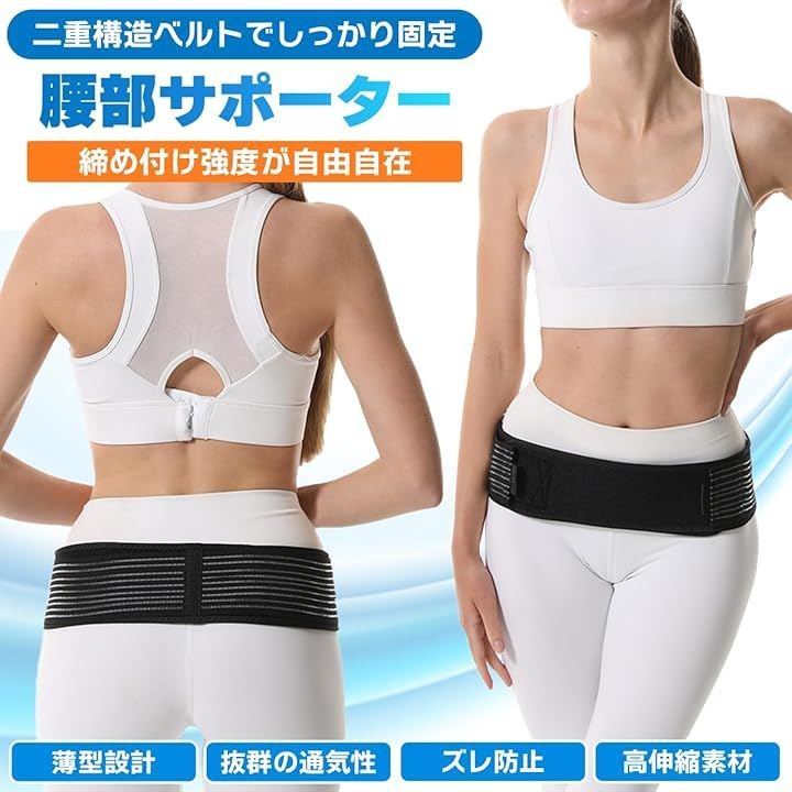 薄型・軽量 腰サポーター 現役医師監修 ベルト 骨盤ベルト 二重加圧式 ズレにくい 通気性 スポーツ 作業 脱着簡単 男女兼用 ワンサイズ